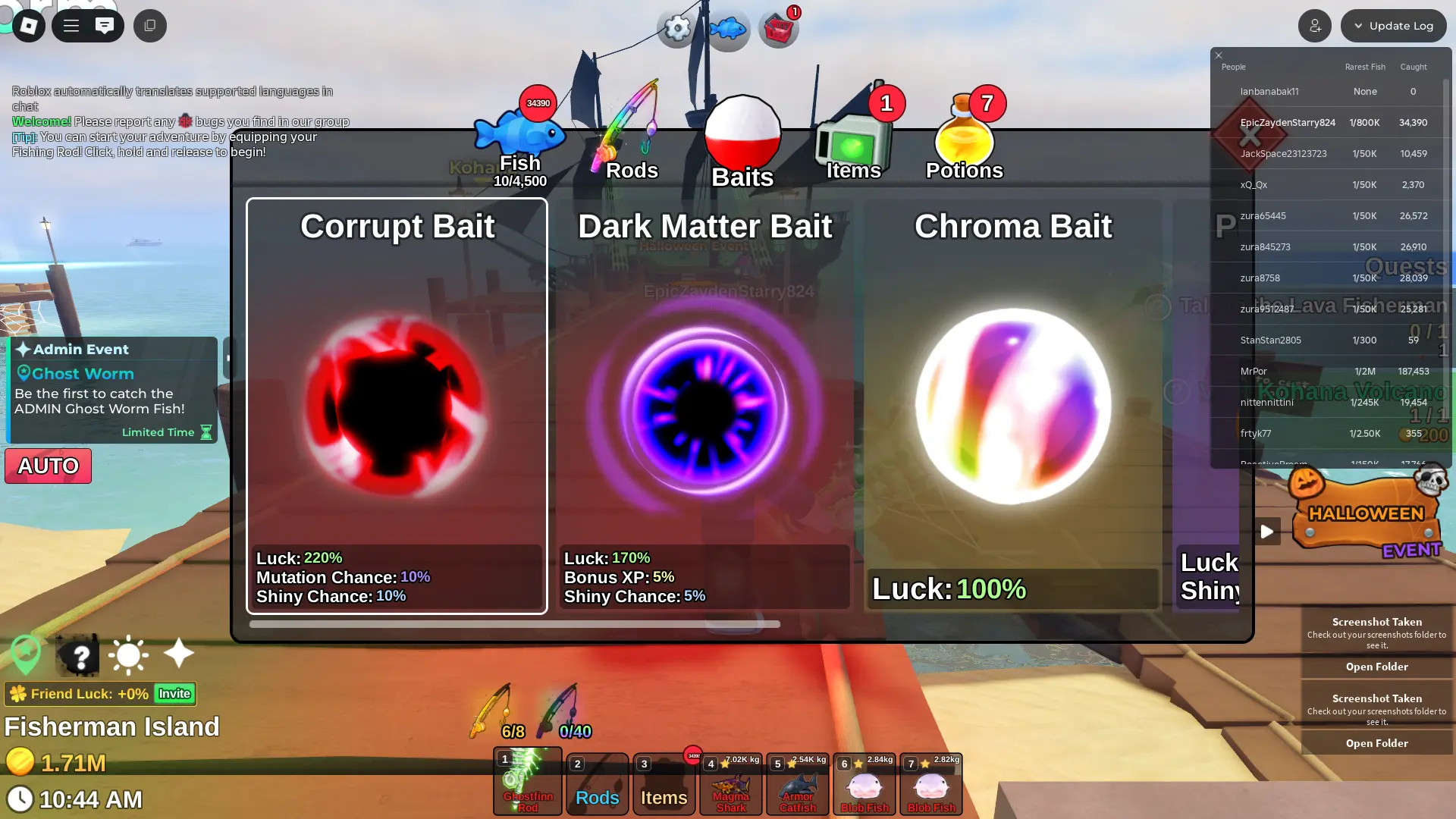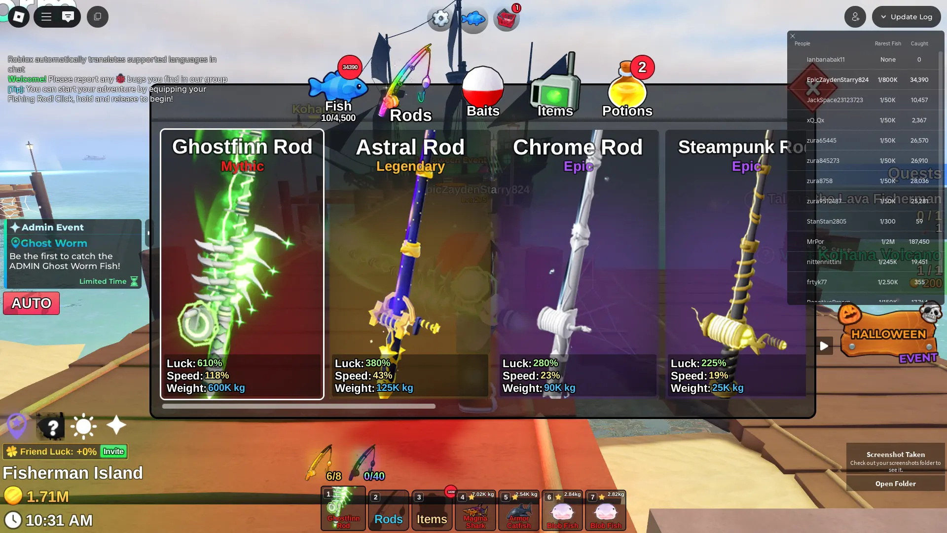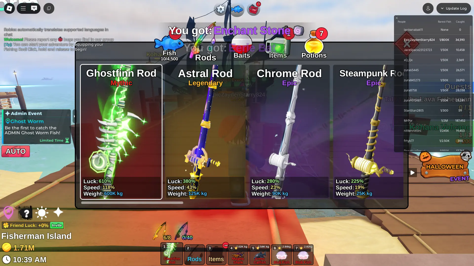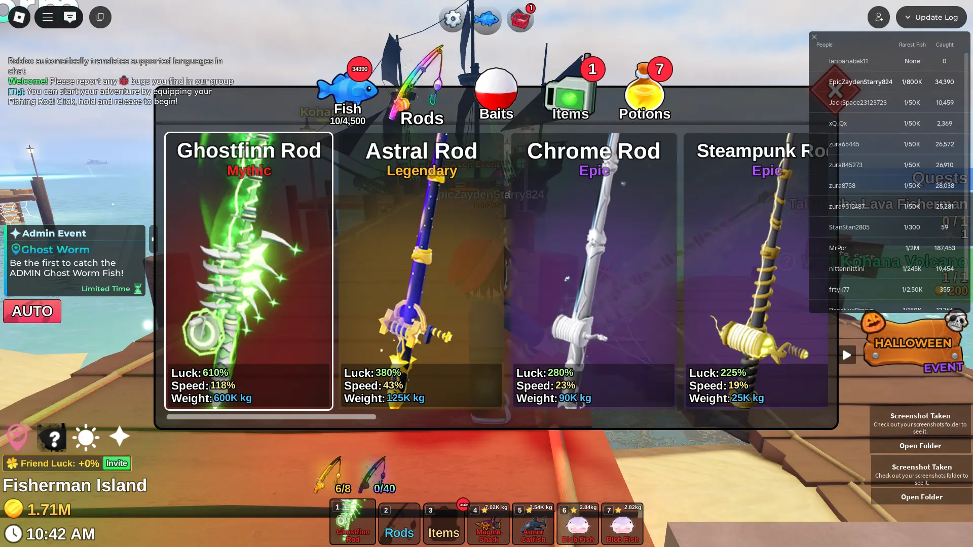 Fish it Account ❄️ Ghostfinn Rod ❄️ Dark Matter Bait ❄️ corrupt bait bait ❄️ secret + mythic Fish ❄️ 1/800k catch ❄️ 1.7 million Coin ❄️ Skin Rods ❄️ Level 275