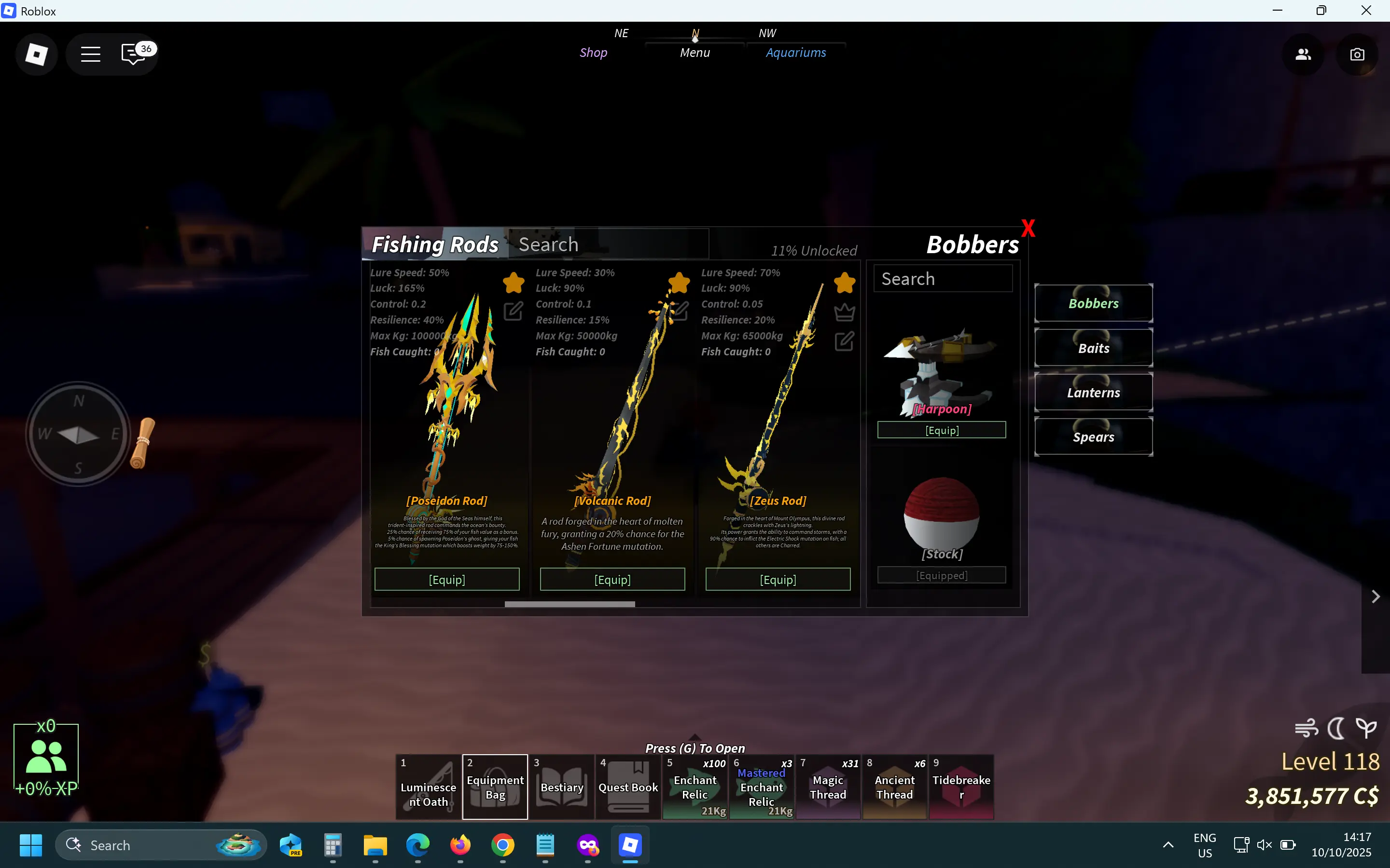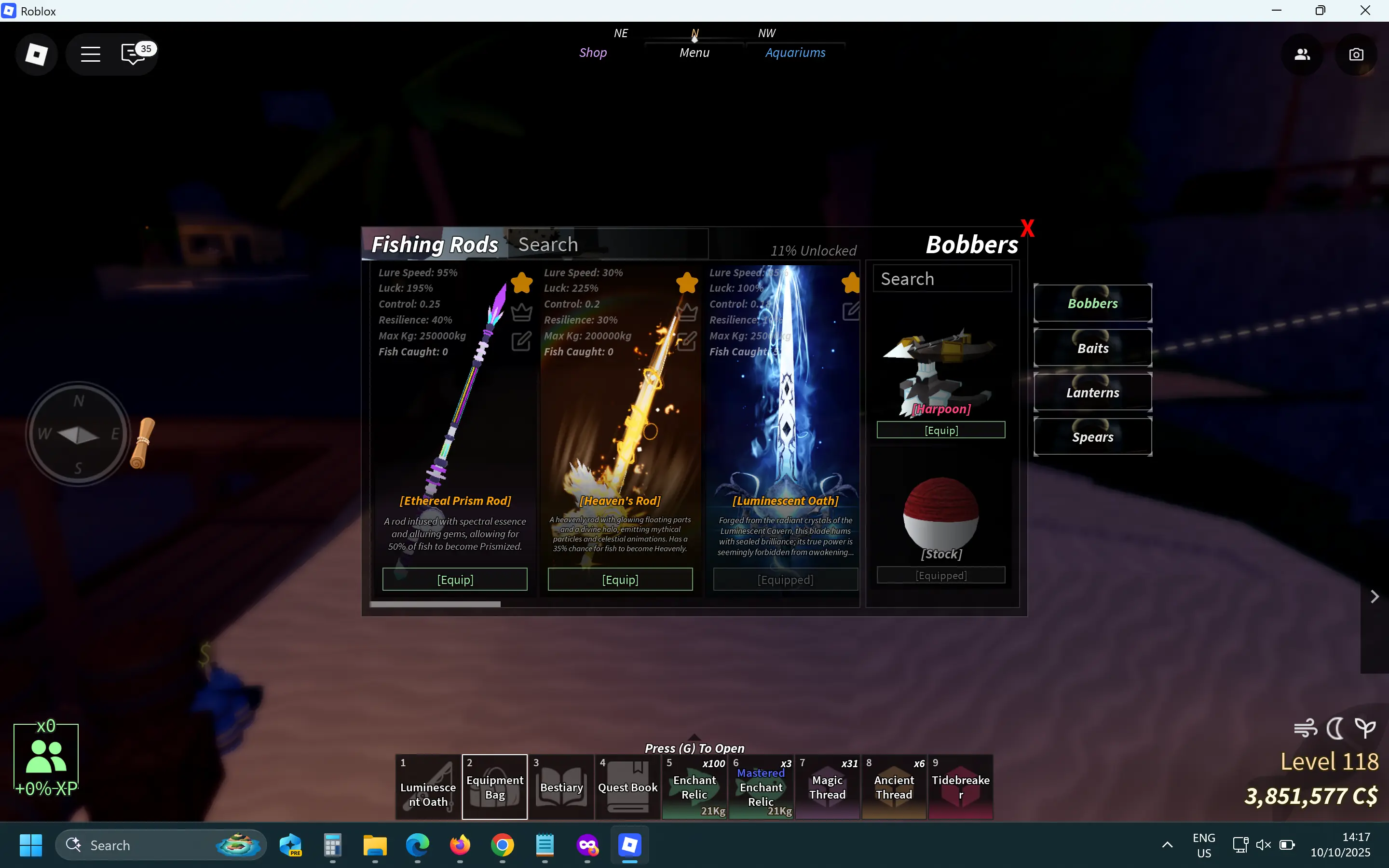 [Instant] [Fisch] Rod: Luminescent Oath, Ethereal Prism, Heaven, Poseidon, Trident, Zeus | 100x Enchant Relic | Level 118 | 3M C$