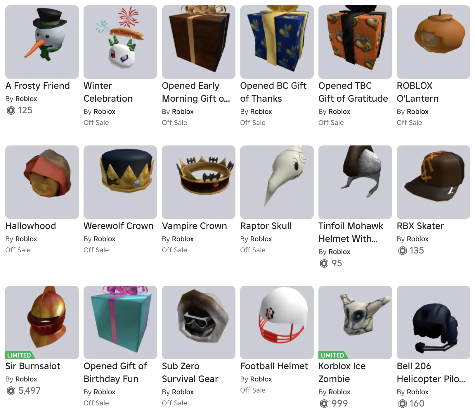ROBLOX 2008 Account π₯170+ Offsales & Limiteds π₯ Hex Head + Brinsop + Hallowhood + Vampire Crown + Bunny + Werewolf Crown + Big Ad Man Fedora + Inverted Stocking + Erik Cassel's Hat + Sub Zero Survival Gear | 16K+ Robux SPENT | Email Access β