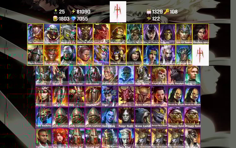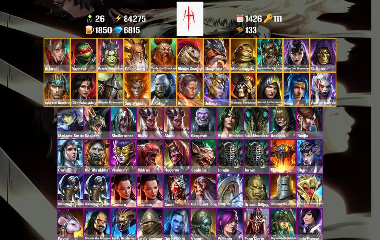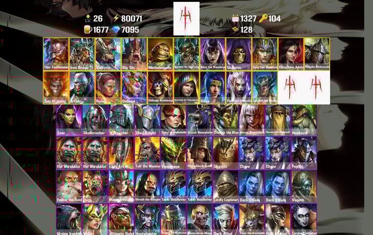 1519 Days 84.9k Energy [Mythical Starter] Starsage Galathir ⸱ Supreme Kael ⸱ Bad-el-Kazar ⸱ Nekmo Thaar ⸱ Skartorsis ⸱ Nogdar the Headhunter ⸱ Maneater ⸱ Skullcrown ⸱ 49.6m Silver ⸱ 6.5k Gems