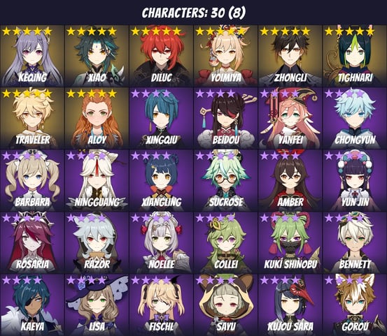 ⚡Asia⚡ AR 55 💎 30 Characters 💎 Keqing 💎 Xiao 💎 Diluc 💎 Yoimiya 💎 Zhongli 💎 Tighnari 💎 Aloy