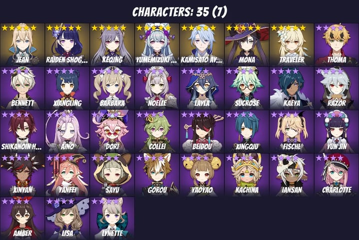 ⚡Asia⚡ AR 51 💎 35 Characters 💎 Jean 💎 Raiden Shogun 💎 Keqing 💎 Yumemizuki Mizuki 💎 Kamisato Ayato 💎 Mona