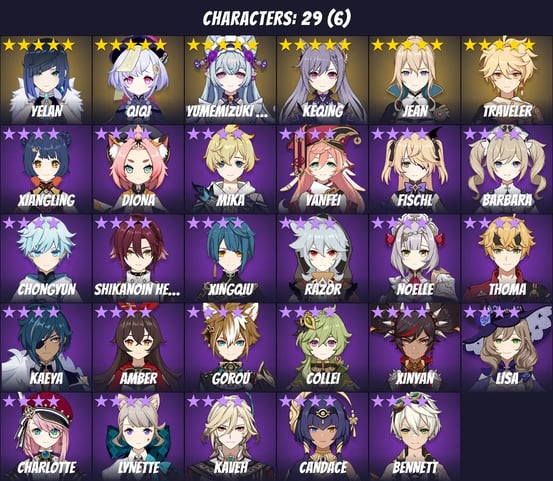 ⚡Asia⚡ AR 48 💎 29 Characters 💎 Yelan 💎 Qiqi 💎 Yumemizuki Mizuki 💎 Keqing 💎 Jean