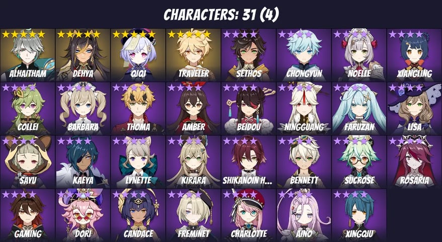 ⚡Asia⚡ AR 49 💎 31 Characters 💎 Alhaitham 💎 Dehya 💎 Qiqi