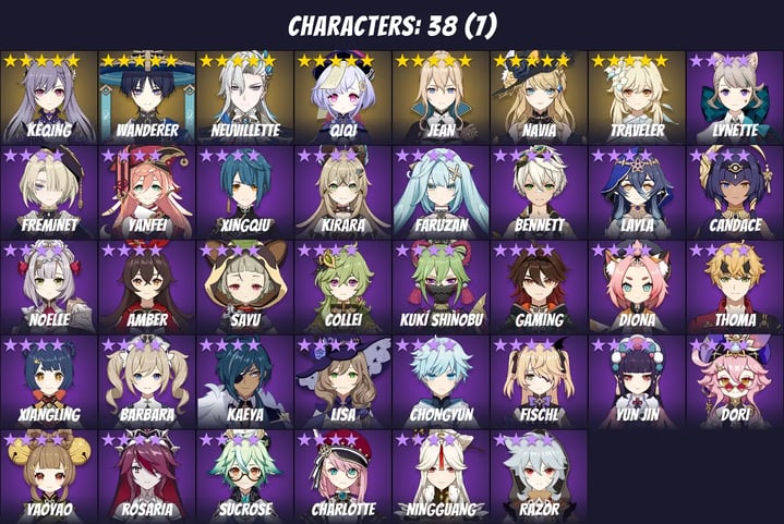 ⚡Asia⚡ AR 50 💎 38 Characters 💎 Keqing 💎 Wanderer 💎 Neuvillette 💎 Qiqi 💎 Jean 💎 Navia