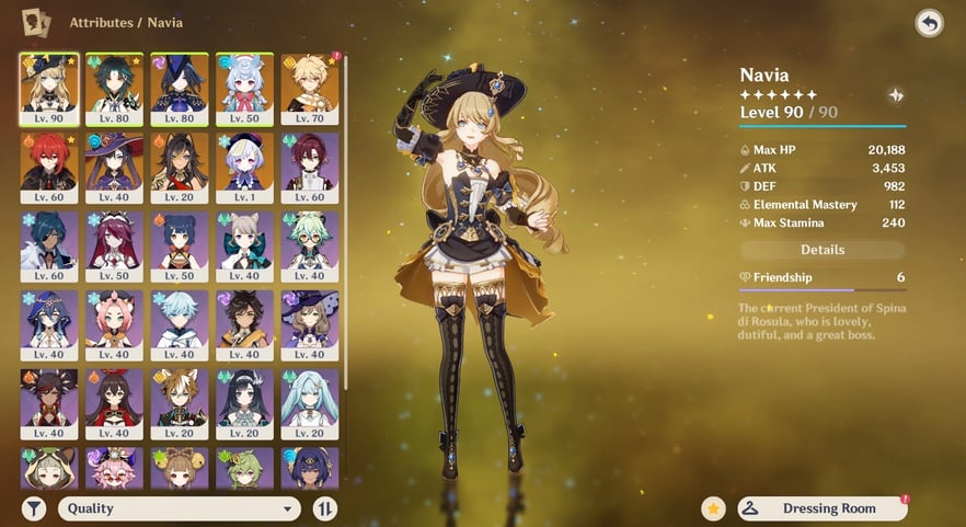 EU AR50 | 5 stars*11 Clorinde(C1) | Dehya | Diluc(C1) | Mona | Navia | Qiqi | Sigewinne | Xiao | Amos' Bow | Skyward Atlas | Verdict | lots of 4* characters and weapons
