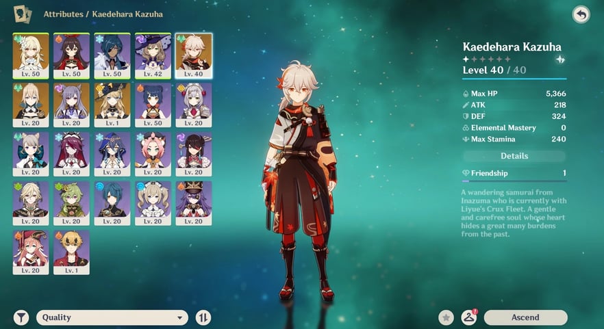 EU AR55 | 5 stars*10 Kaedehara Kazuha | Keqing(C2) | Nahida | Qiqi(C2) | Tighnari | Venti | Xilonen(C1) | Yae Miko | Lost Prayer to the Sacred Winds | Peak Patrol Song | lots of 4* characters and weapons