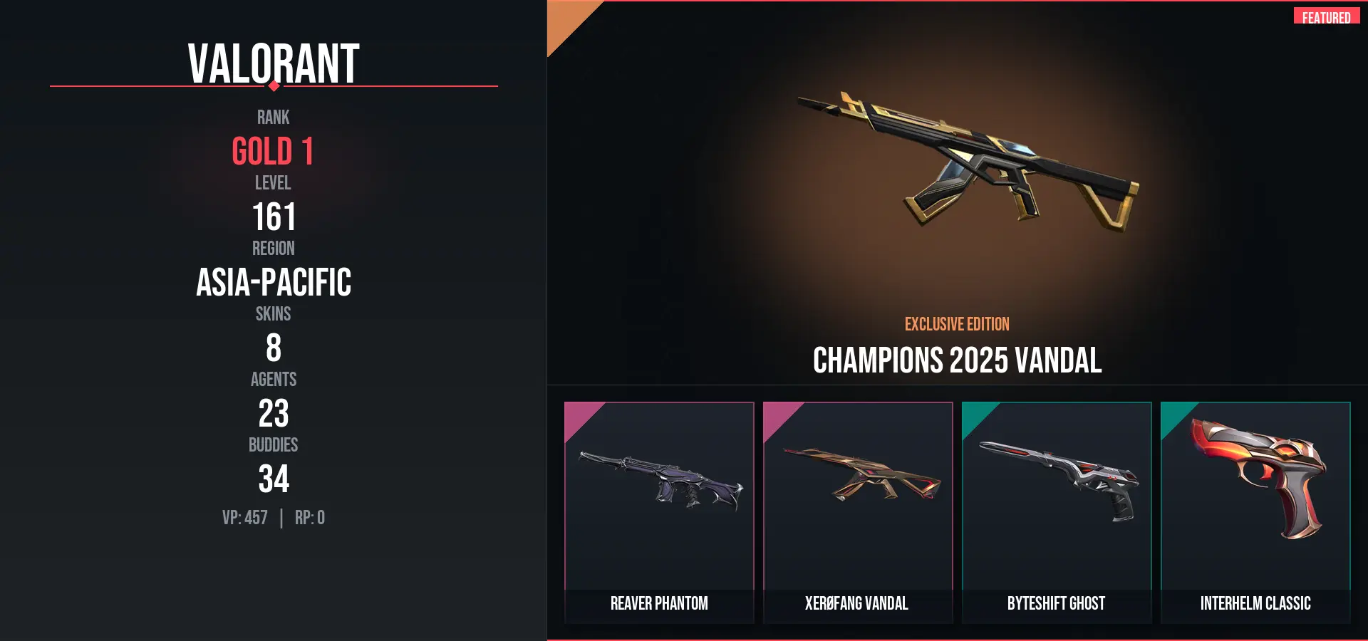 8 Skins / 6225 VP SPENT / Champions 2025 Bundle / Champions 2025 Vandal / Reaver Phantom