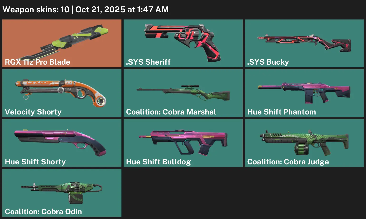AP | 10 Skins | exp SILVER 3 | RGX 11z Pro Blade | Coalition: Cobra Marshal | .SYS Sheriff | .SYS Bucky | Velocity Shorty | Hue Shift Phantom | S4G