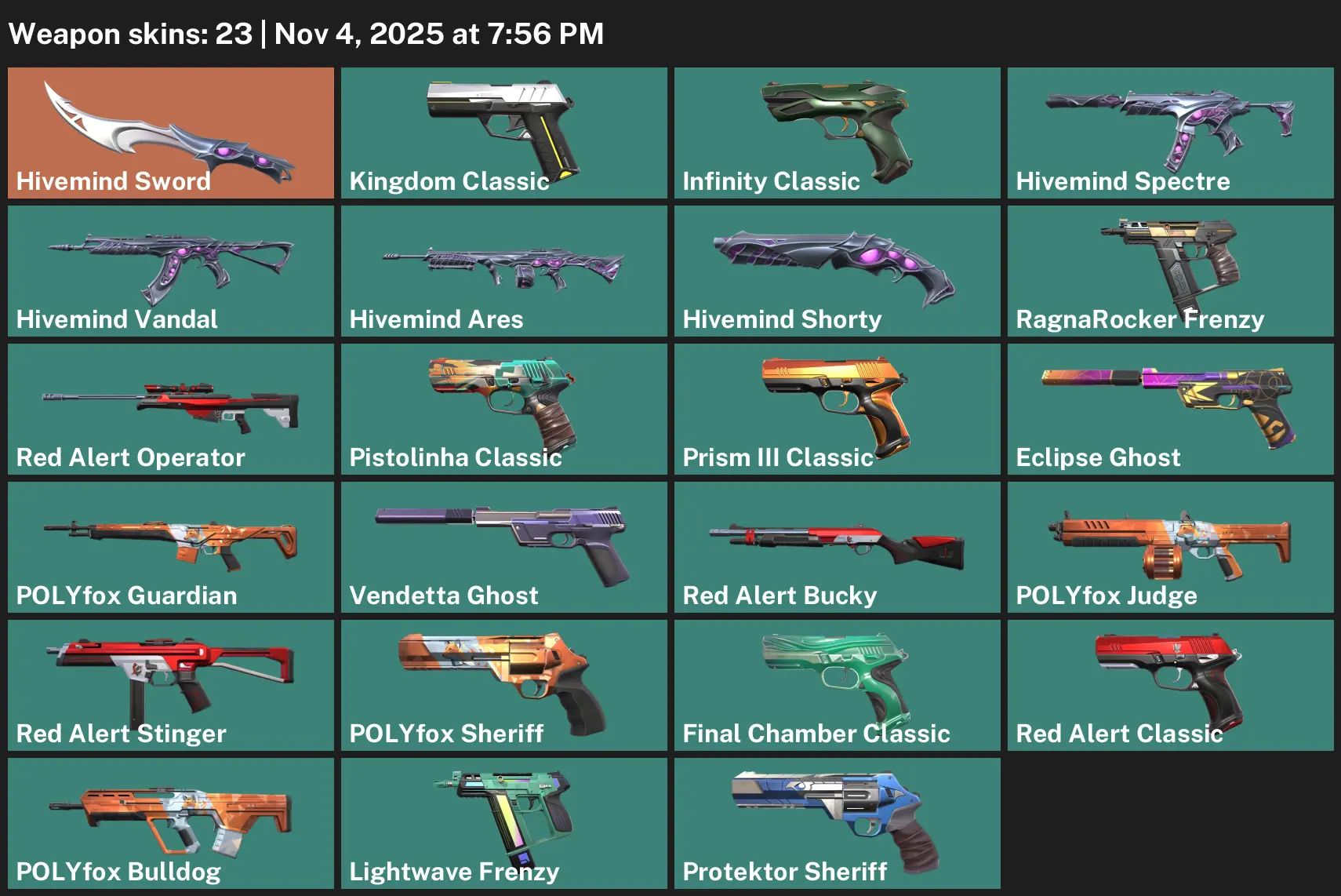 AP | 23 Skins | exp SILVER 2 | Hivemind Sword | Hivemind Vandal | Red Alert Operator | RagnaRocker Frenzy | Eclipse Ghost | Red Alert Classic | S4G