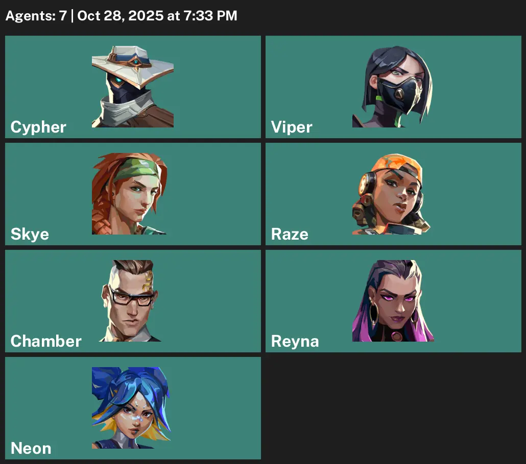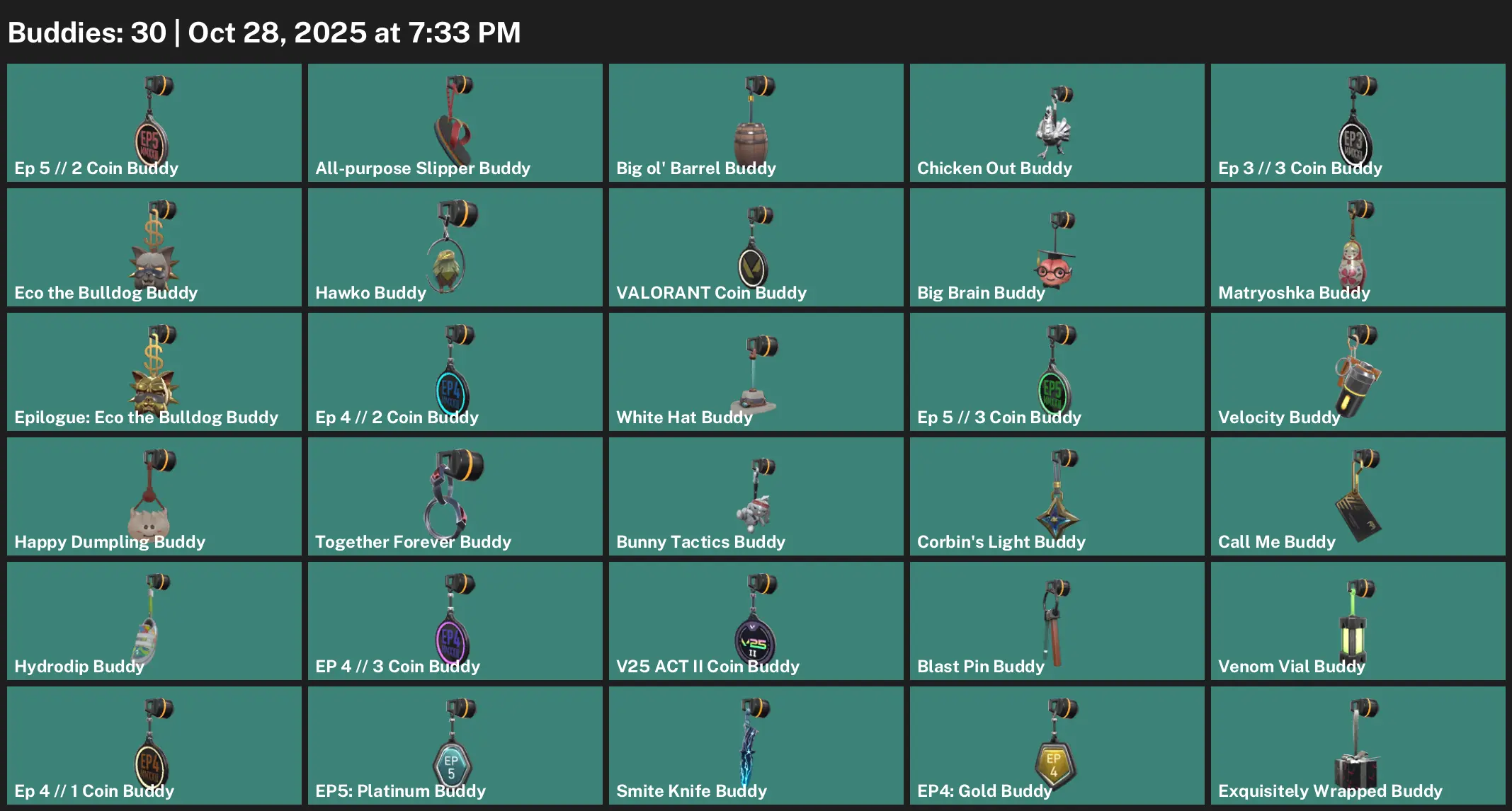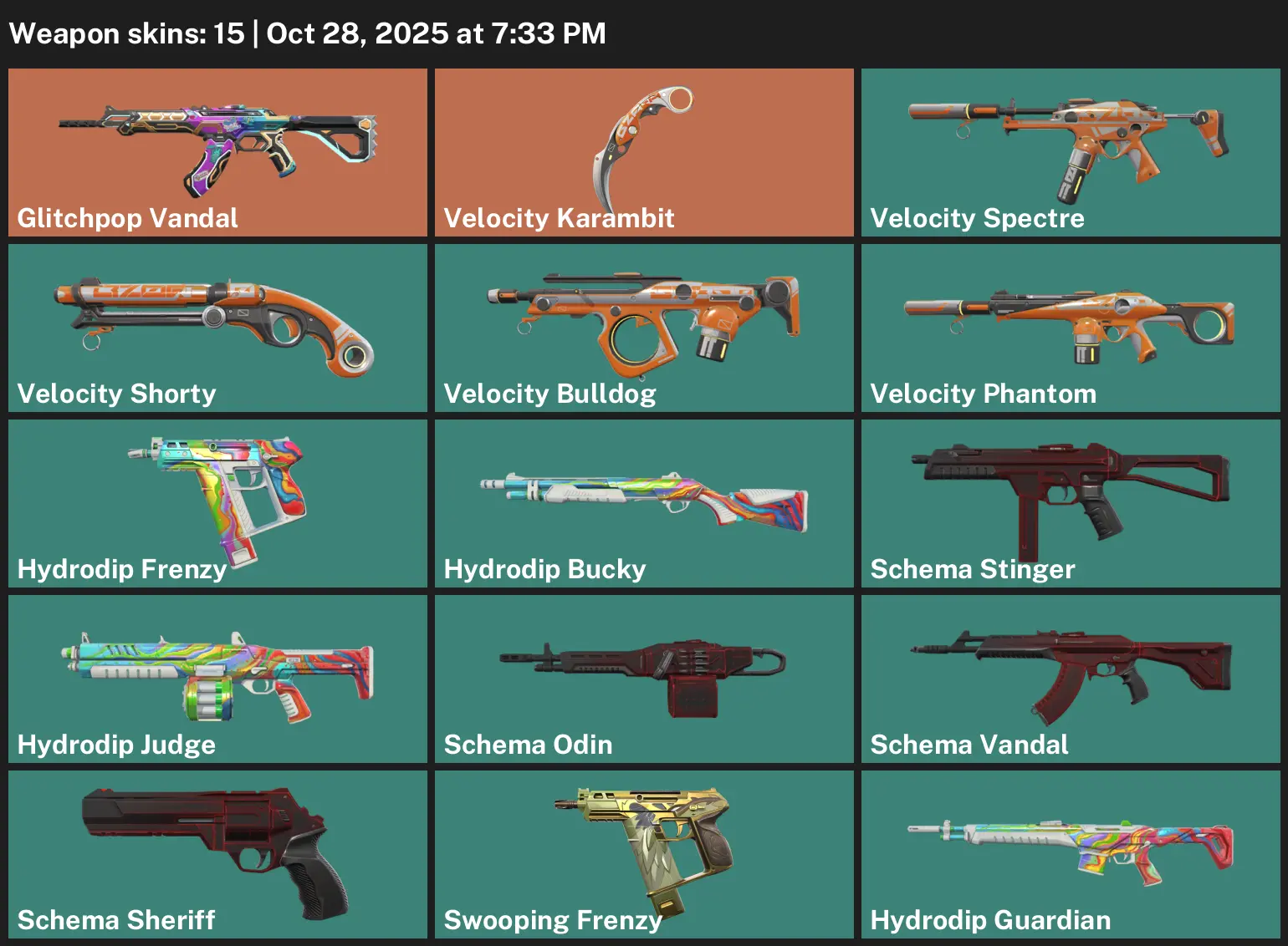 โ๏ธ AP ๐ค Unranked ๐ฉฑ 15 Skins ๐ 55 VP ๐ค 7 Agents โฒ๏ธ Value: 2175 VP ๐ค Glitchpop Vandal ๐ฆฆ Velocity Karambit ๐ Velocity Spectre ๐ฒ Velocity Shorty ๐ฆฎ Velocity Bulldog ๐ฆ Velocity Phantom