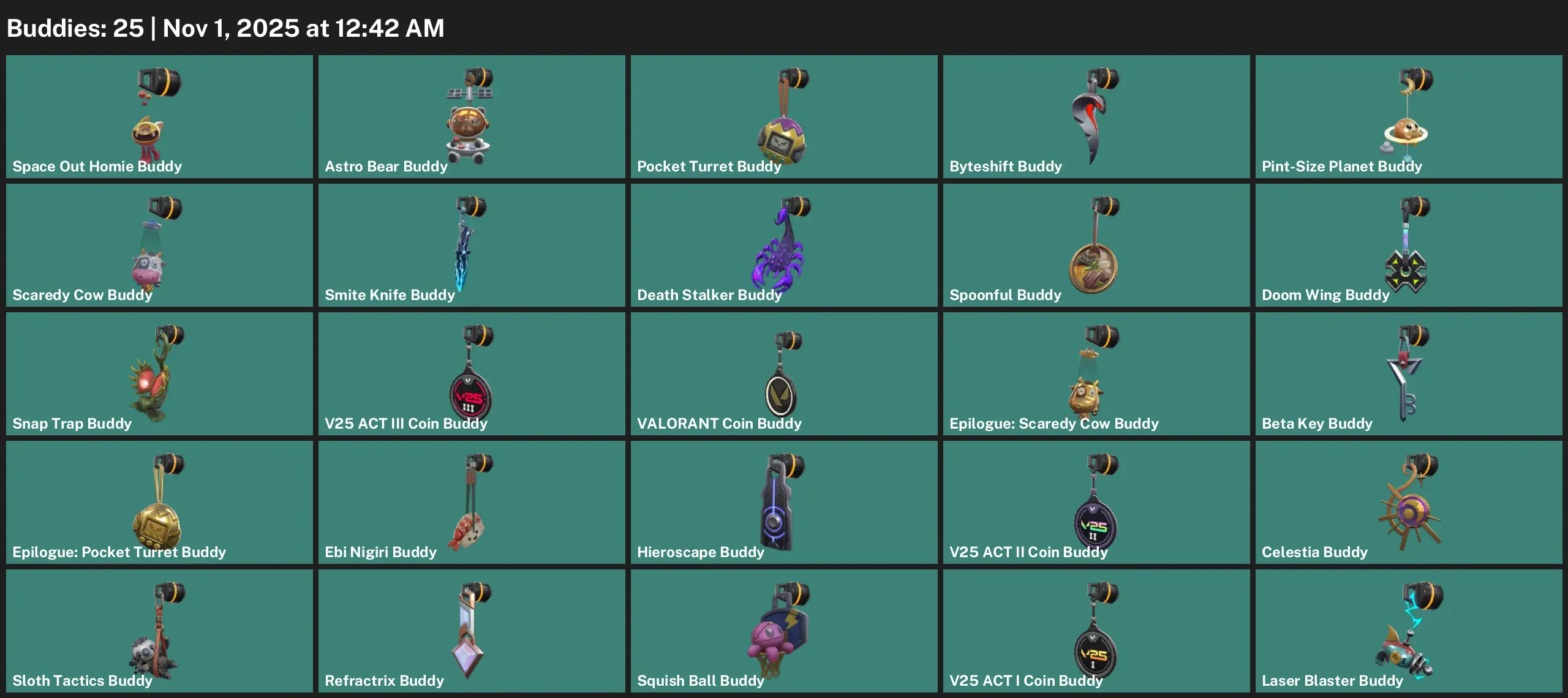 🌲 BR 🐄 Bronze 1 🌉 29 Skins 💷 82 VP 🏫 14 Agents 👜 Value: 8300 VP 🍒 Imperium Sheriff 🚈 Glitchpop Phantom 👿 Byteshift Knife 🚅 BlastX Spectre 🤣 Hieroscape Blades 🗺 Oni Vandal