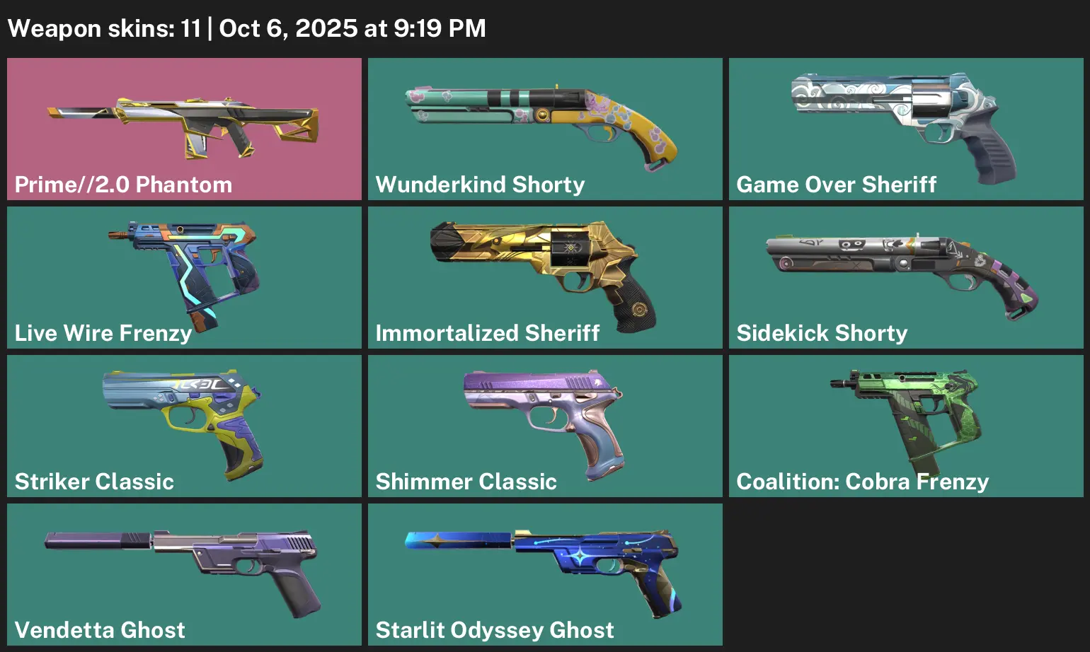 EU | 11 Skins | exp GOLD 3 | Prime//2.0 Phantom | Coalition: Cobra Frenzy | Starlit Odyssey Ghost | Striker Classic | #VDX1411 | #MBFN
