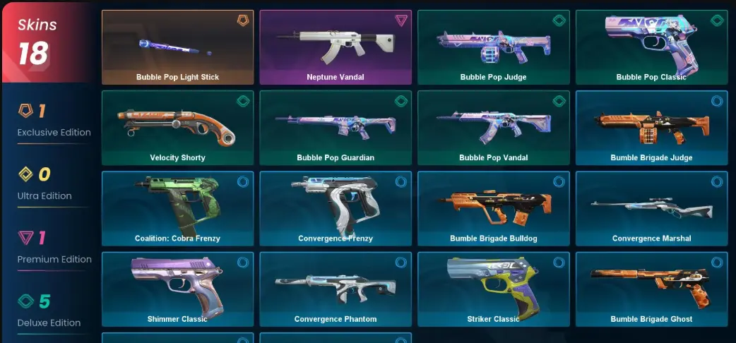 EU 18 skins / Bubble Pop Light Stick / Neptune Vandal VL30