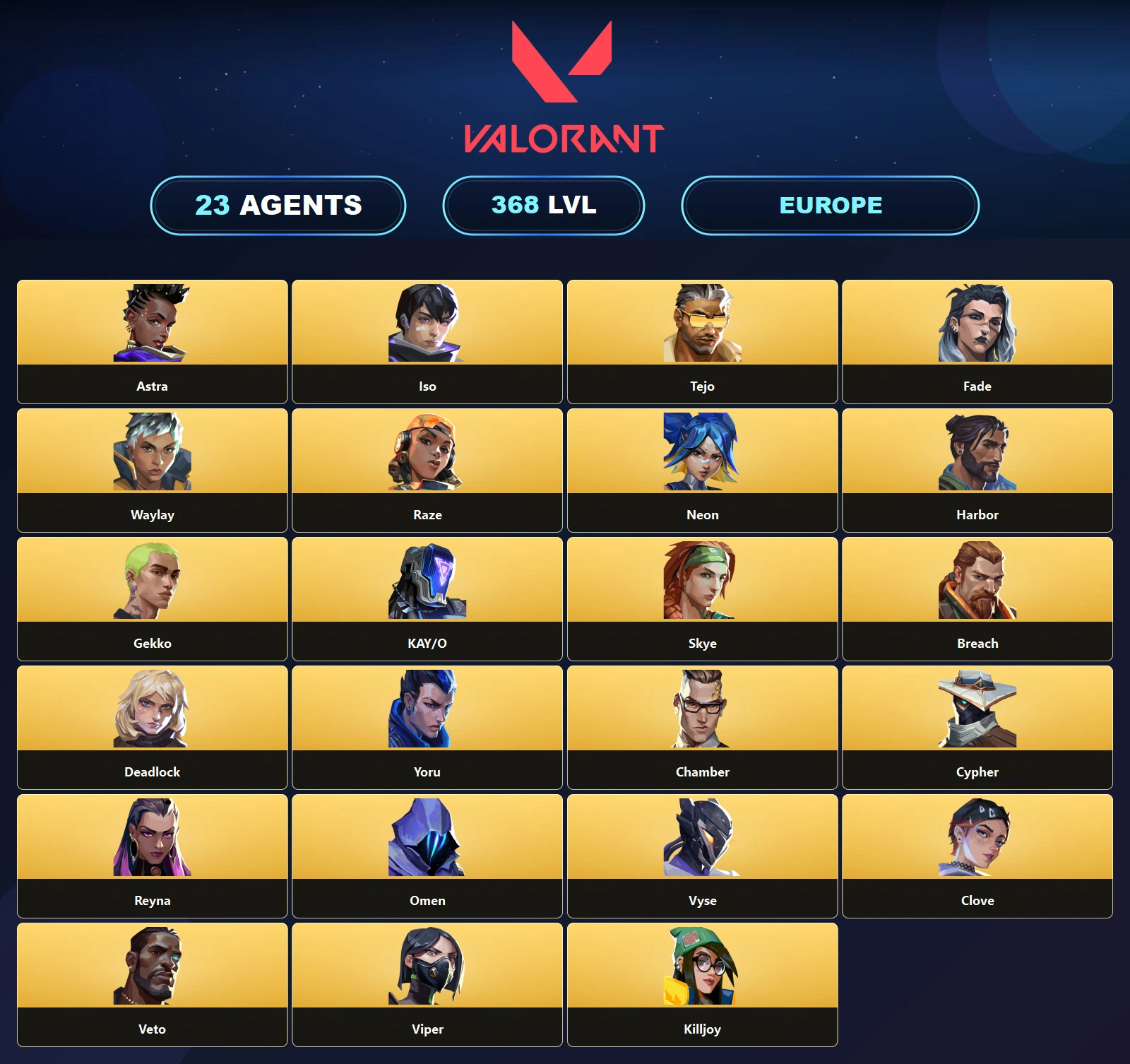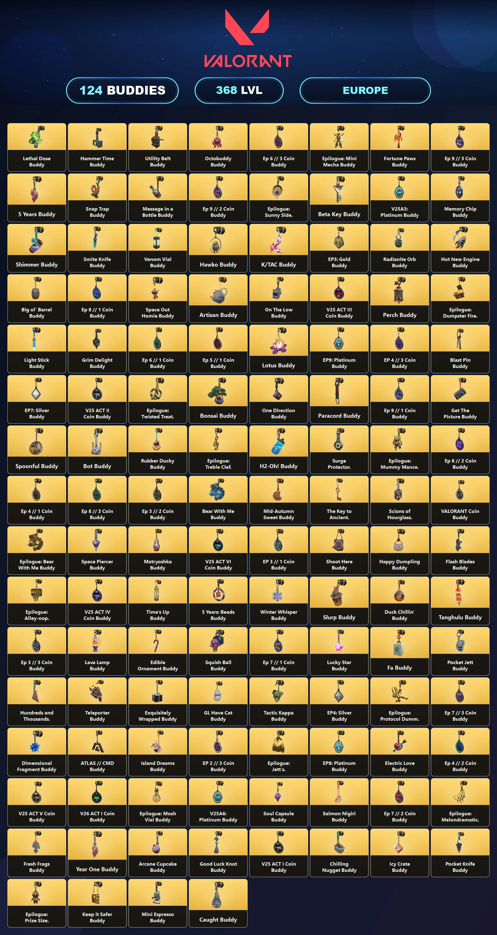 EU ๐ 51 Skins ๐ช 368 Level ๐ง Prime Vandal ๐ Ion Spectre ๐ข Transition Shorty ๐ช Perch Phantom ๐ ATLAS // CMD Vandal ๐ช K/TAC Vandal ๐ฉ K/TAC Blade ๐ฒ Unranked ๐ณ 23 Agents