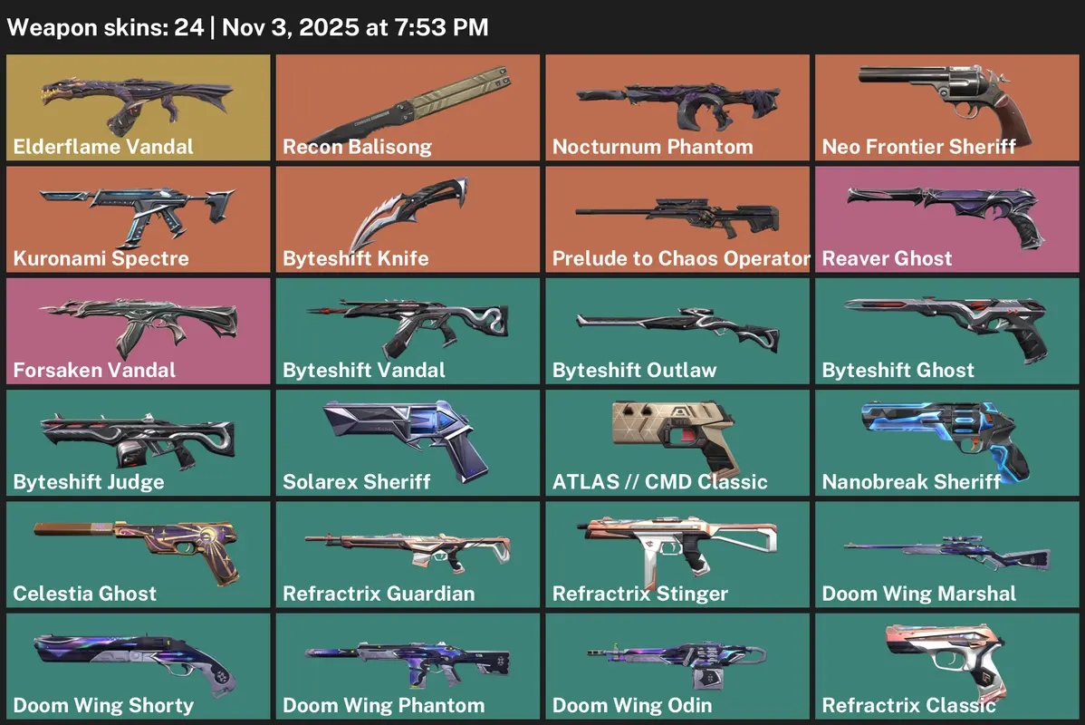 [EU] ๐ฅ | 24 Skins โข Elderflame Vandal โข Recon Balisong โข Nocturnum Phantom โข 18,475 VP โข Full Access