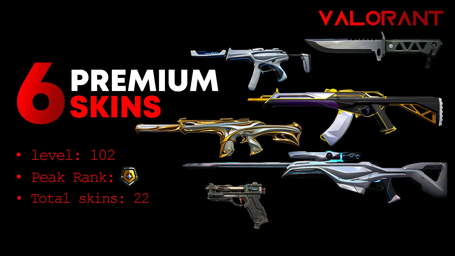 [EU Region] 🔥 22 Skins ⚡ Xenohunter Knife 🏆 Prime Vandal 💠Sovereign Phantom 💎 ion Spectre & OP ⚡ Cryostasis Classic 💠 2 Flexes + 1 Battle Pass ⚡ First Email Included 🎯 Level 102 ⚡ 22 Agents Unlocked 💠 2 Flexes 🚀 Fastest Delivery