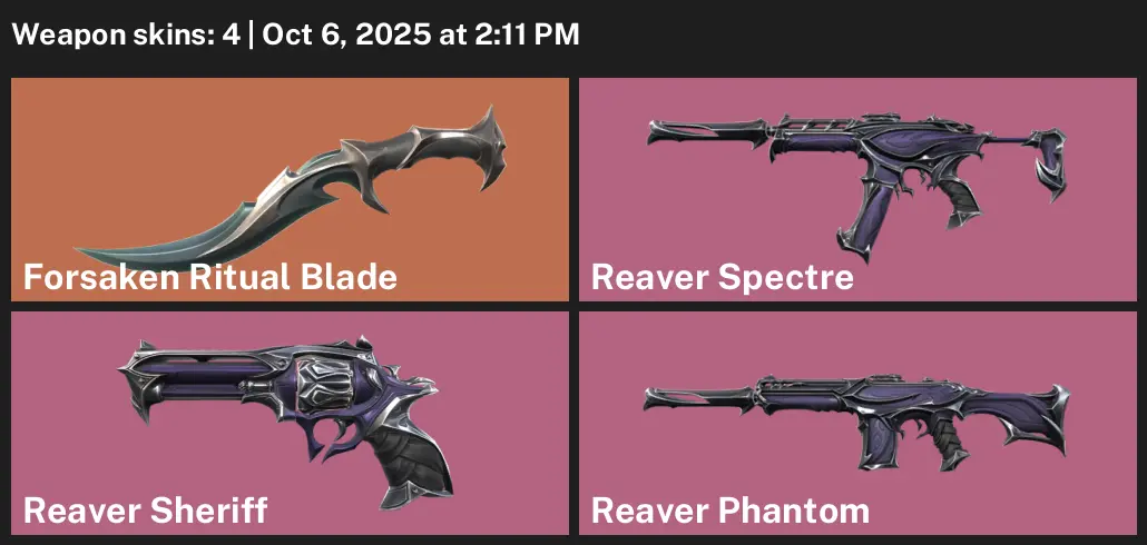 EU | Unranked | Inventory Value 8875 VP | 4 Skins | Reaver Phantom | Reaver Sheriff | Reaver Spectre | Forsaken Ritual Blade | Full Access #7272