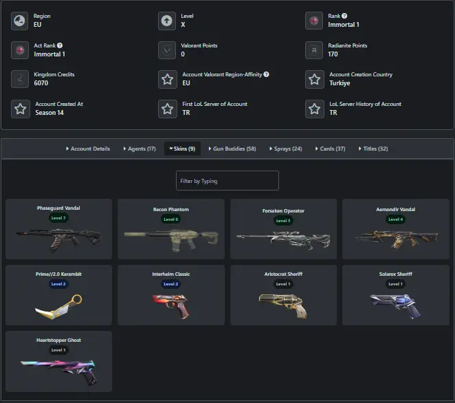 💎 EU/TR Valorant Account | 🎨 Phaseguard Vandal + Recon Phantom + Prime Karambit | 🔐 Full Access | ⚡ Clean Handmade #SKN91R