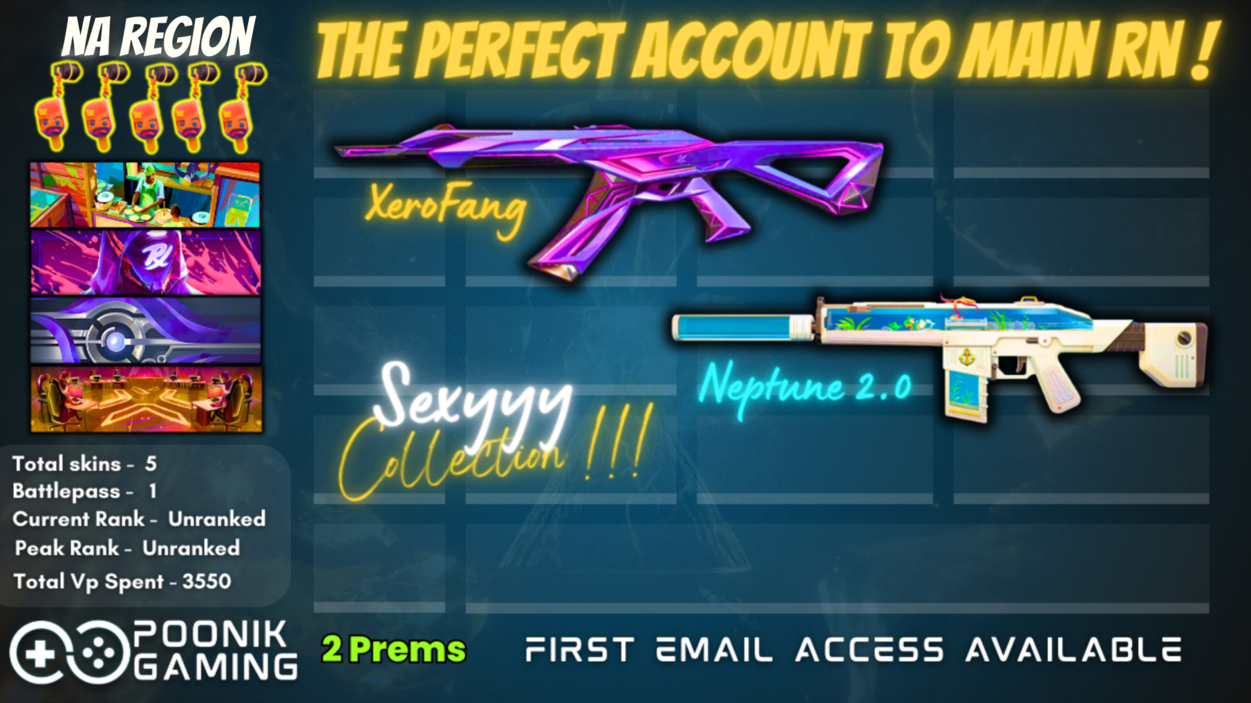 ๐ฏ NA REGION โธฑ XEROFANG VANDAL + NEPTUNE 2.0 PHANTOM | ORIGINAL EMAIL INCLUDED | 1 BATTLEPASS & 5 GUN BUDDIES! [VNA256]
