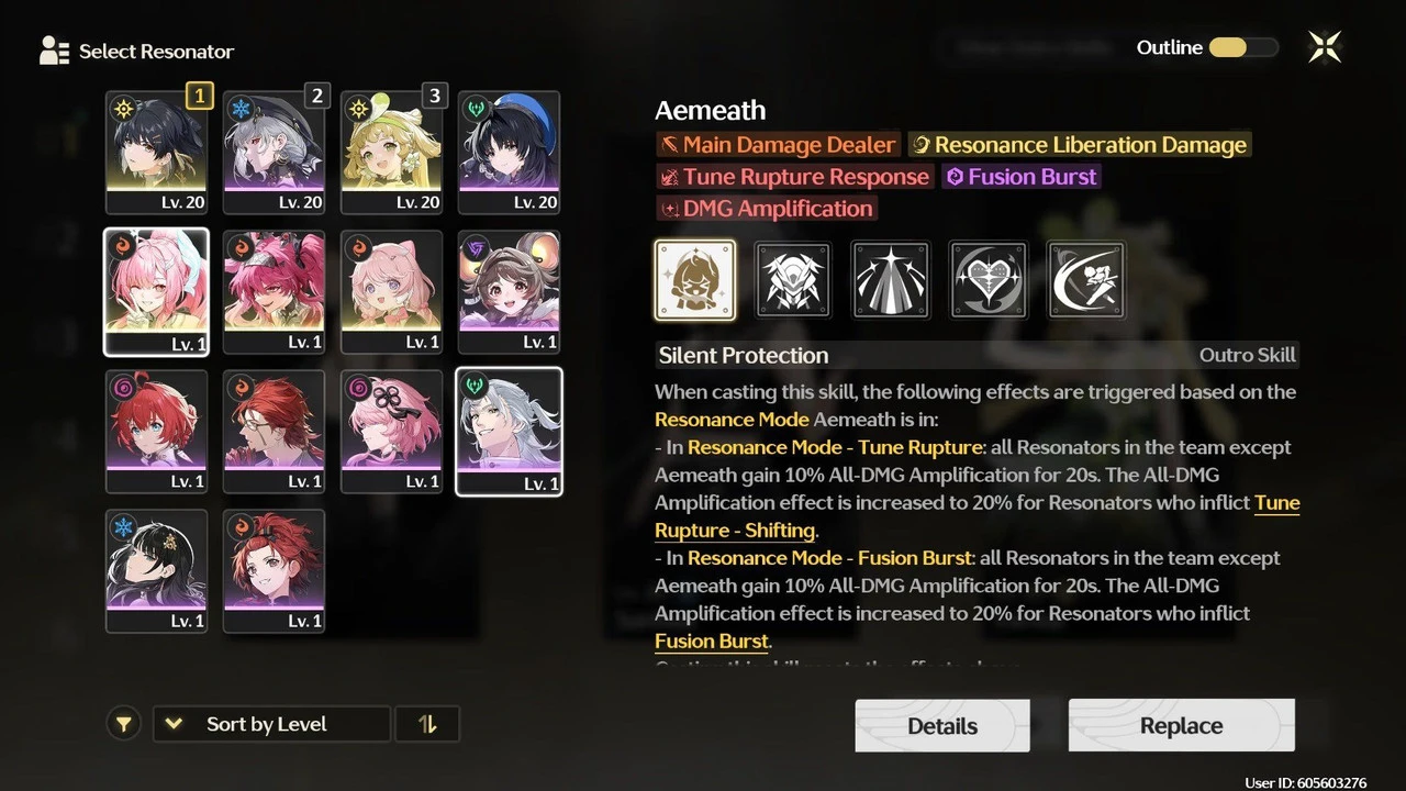 Wuthering Waves ⸱ Europe Server ⸱ Union Level 8 ⸱ Aemeath + Signa + 3 Legendary Heroes