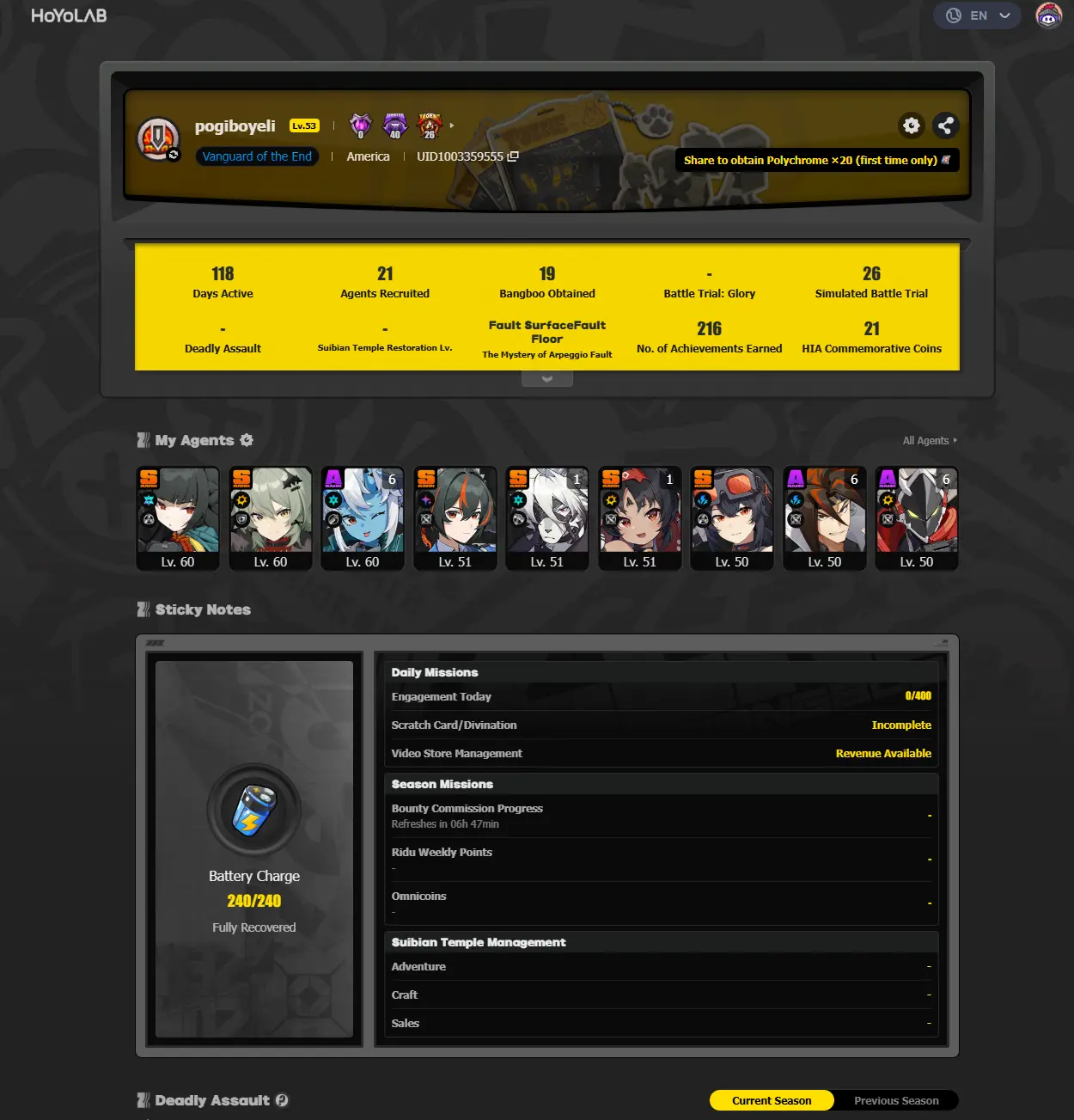 #Z137 [NA] IL 53 | Miyabi+Caesar+Zhu Yuan+Harumasa+Lycaon M1+Nekomata M1+Grace+Rina | FULL ACCESS + EMAIL |