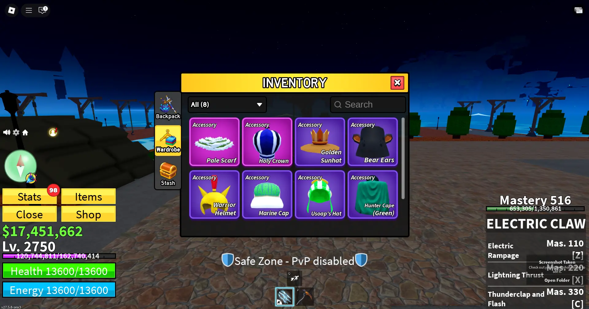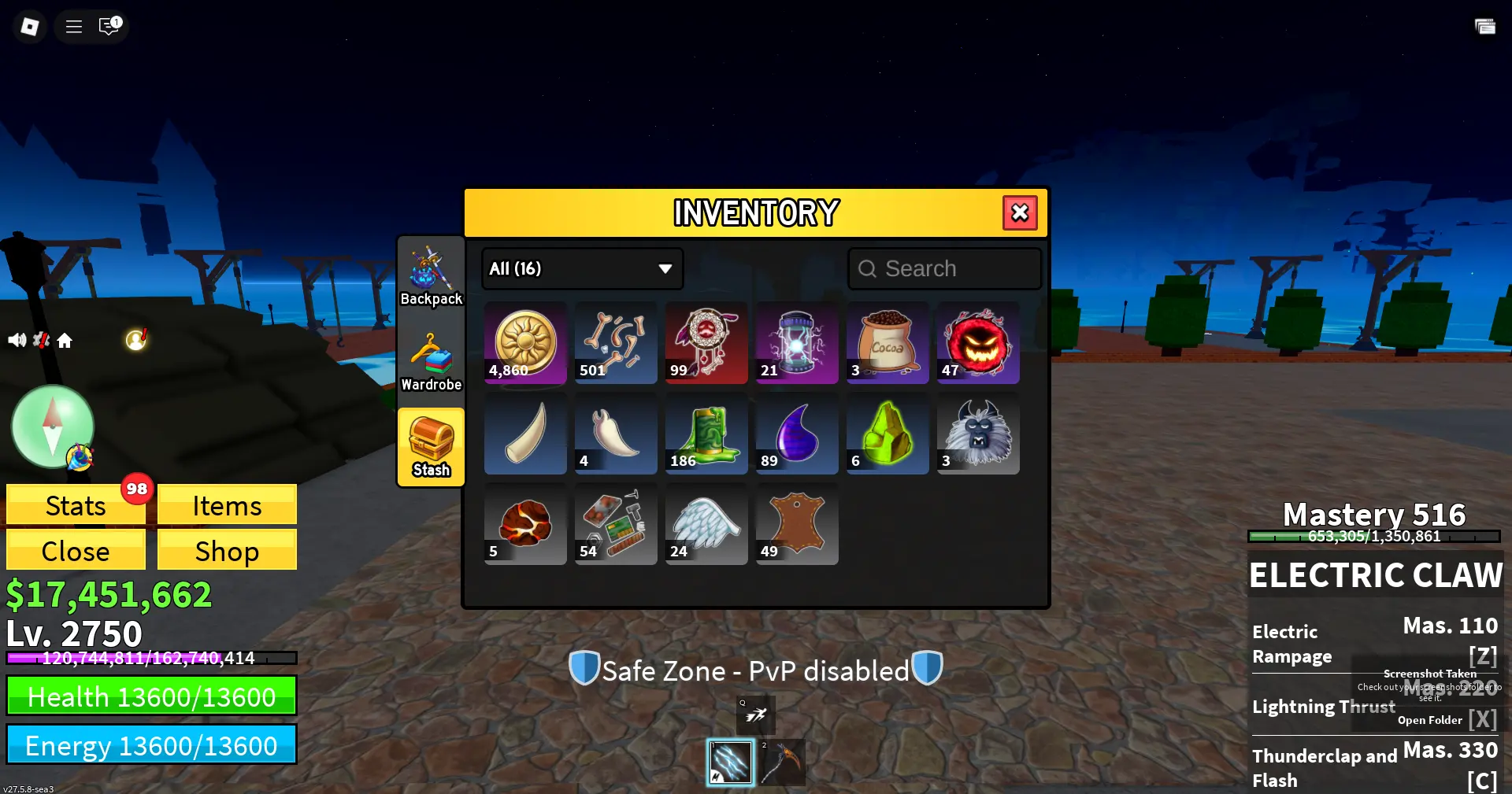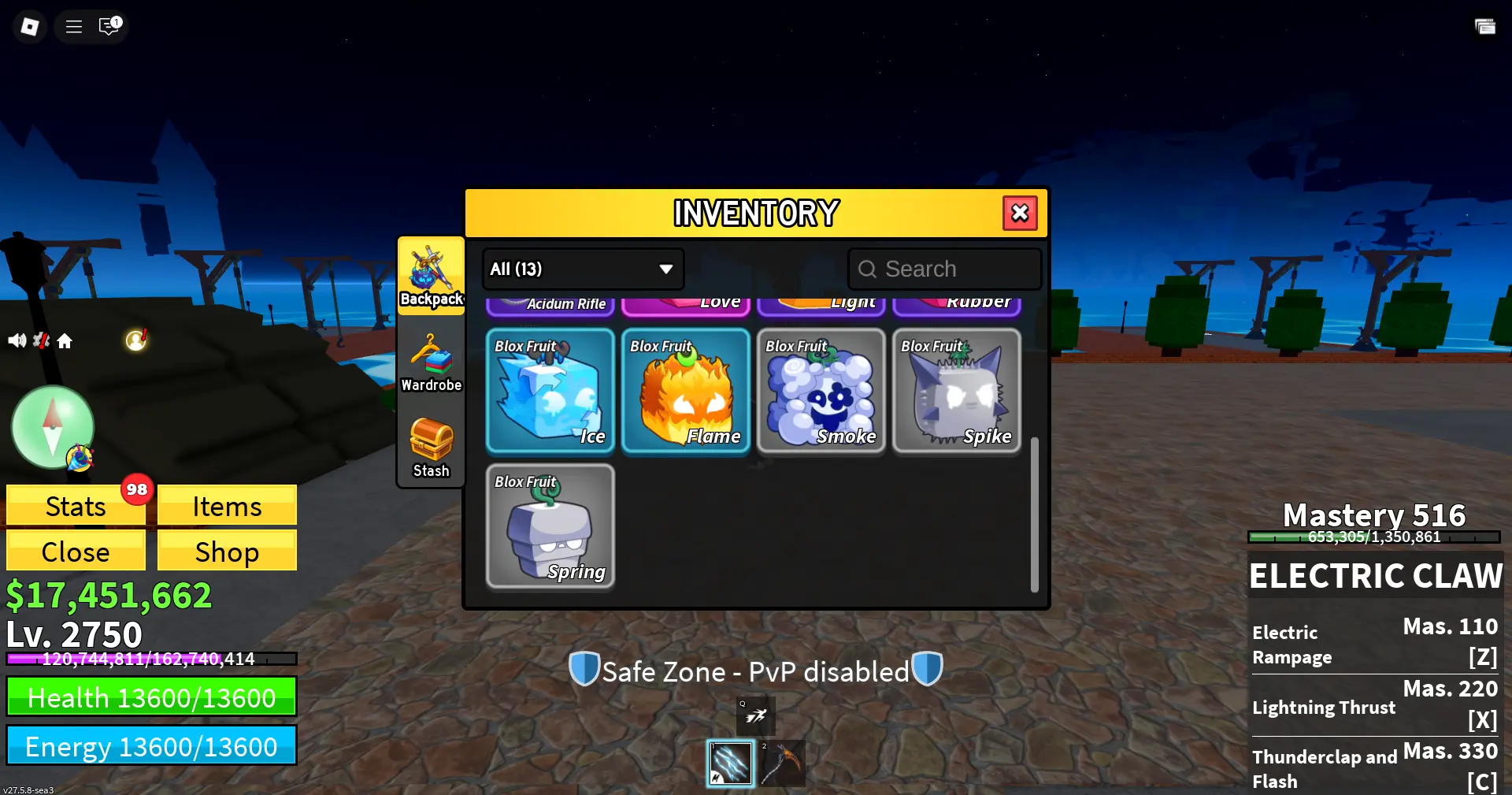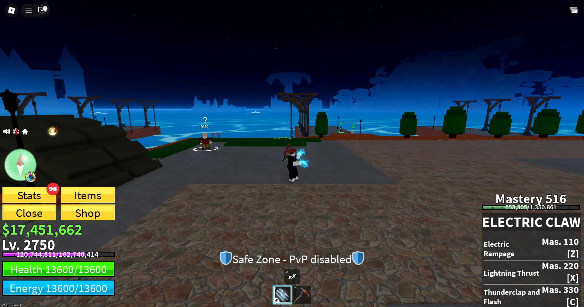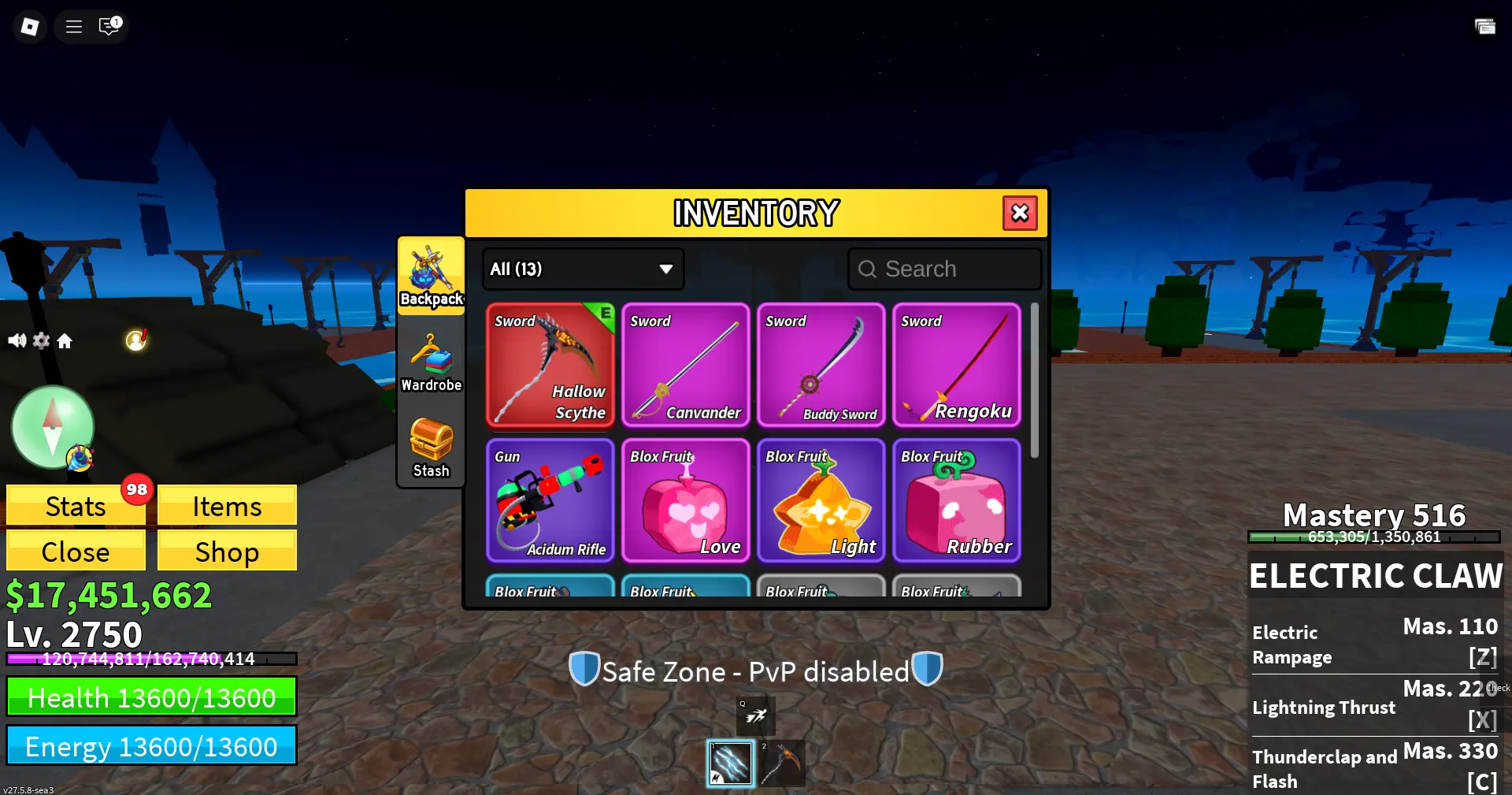 🔥BloxFruit-Roblox🔥Max Level 2750 🔫 Electric Claw 😈 Hallow scythe 😈 Love Fruit 🤑 Cash 17 M 🔐 Unverified Email🚀 instant delivery