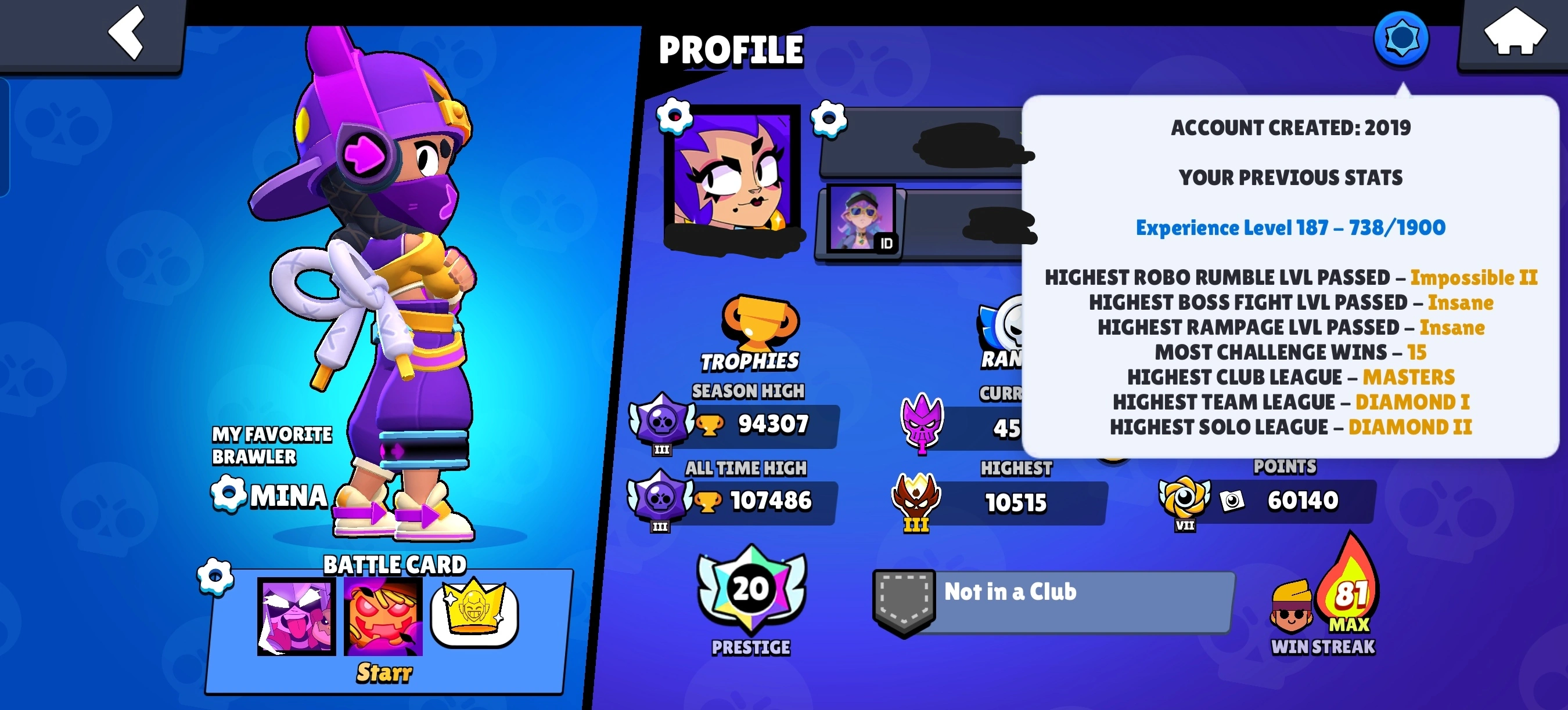 📍107k Trophies📍Masters 3📍All Times Masters📍20x Prestiges📍Meteoric Fame📍Many OG Skins📍Fully Maxed📍28k Wins 3v3📍#rico