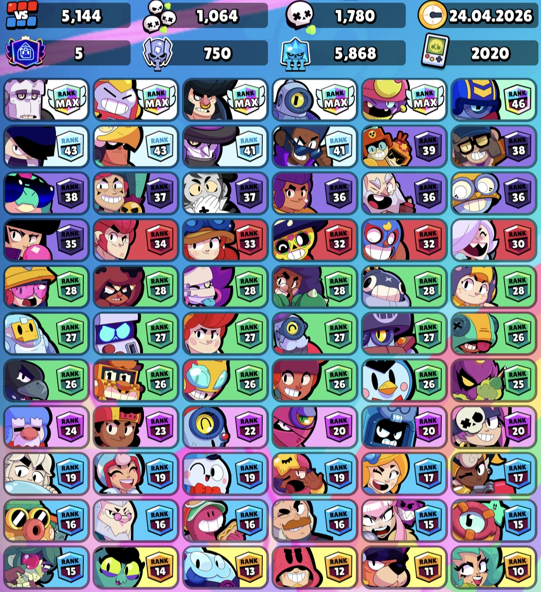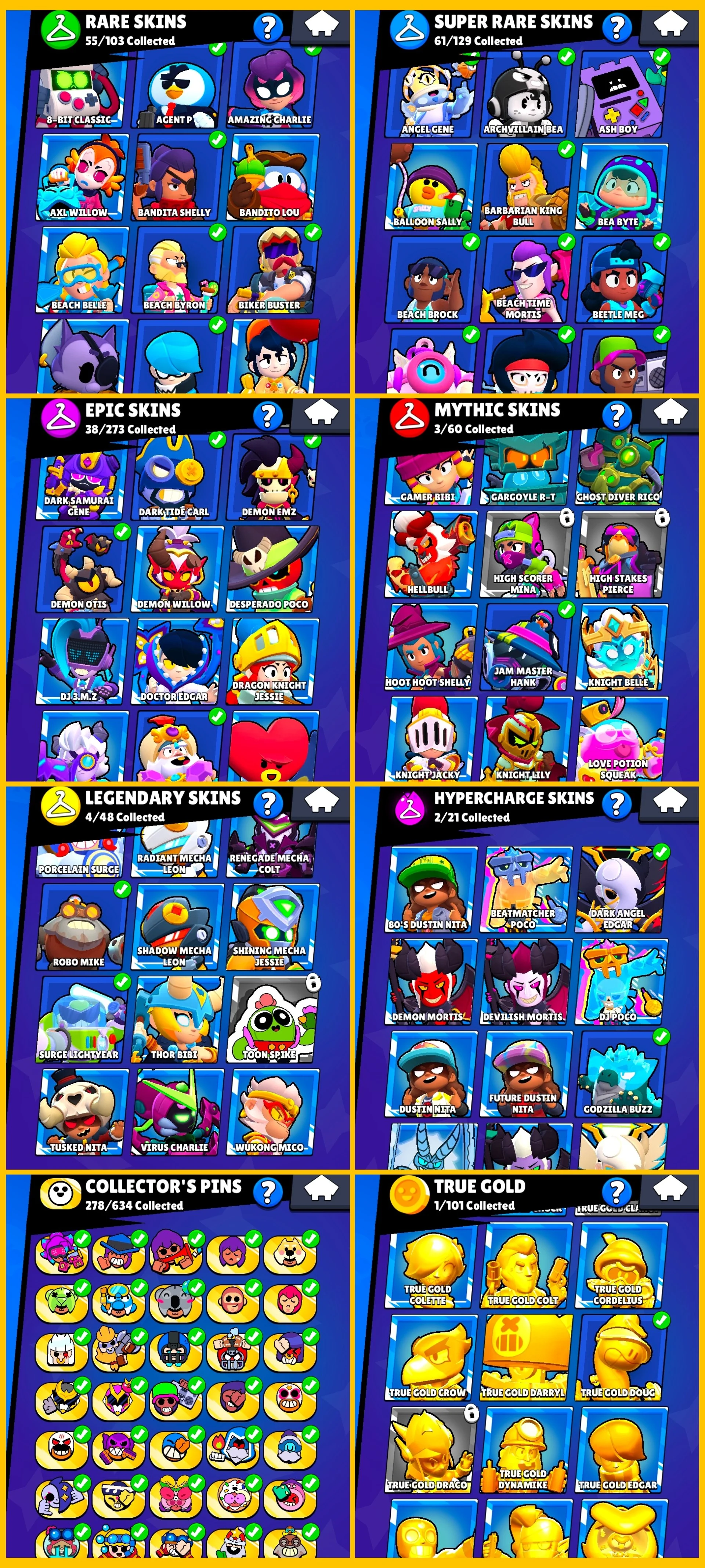 14k Coins / 200 Gem / 35k TROPHY, 85 BRAWLERS [16 Maxed + 27 Hypercharged UNLOCK] 164 Skins | Made in 2020 Year, 8K Matches Played | VR406
