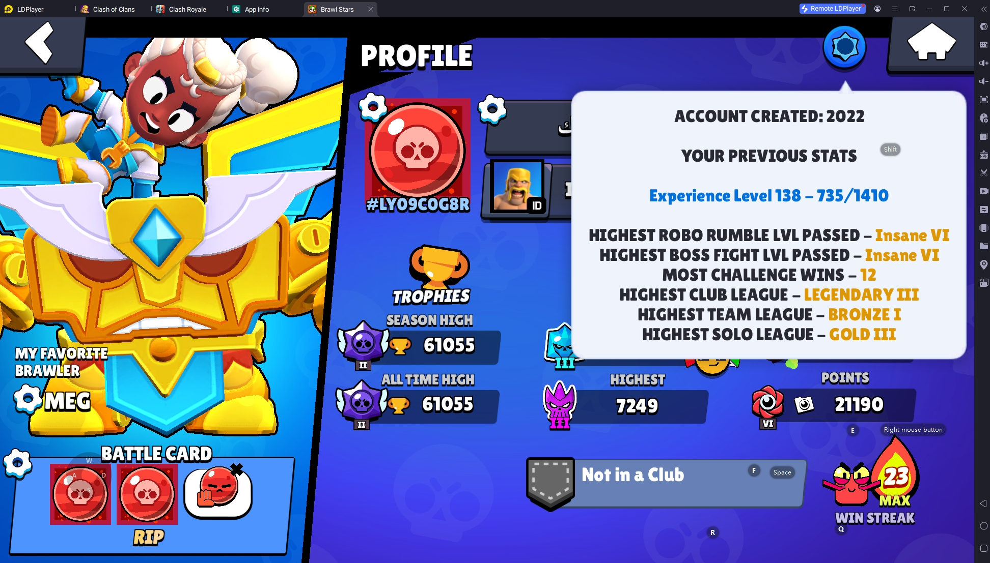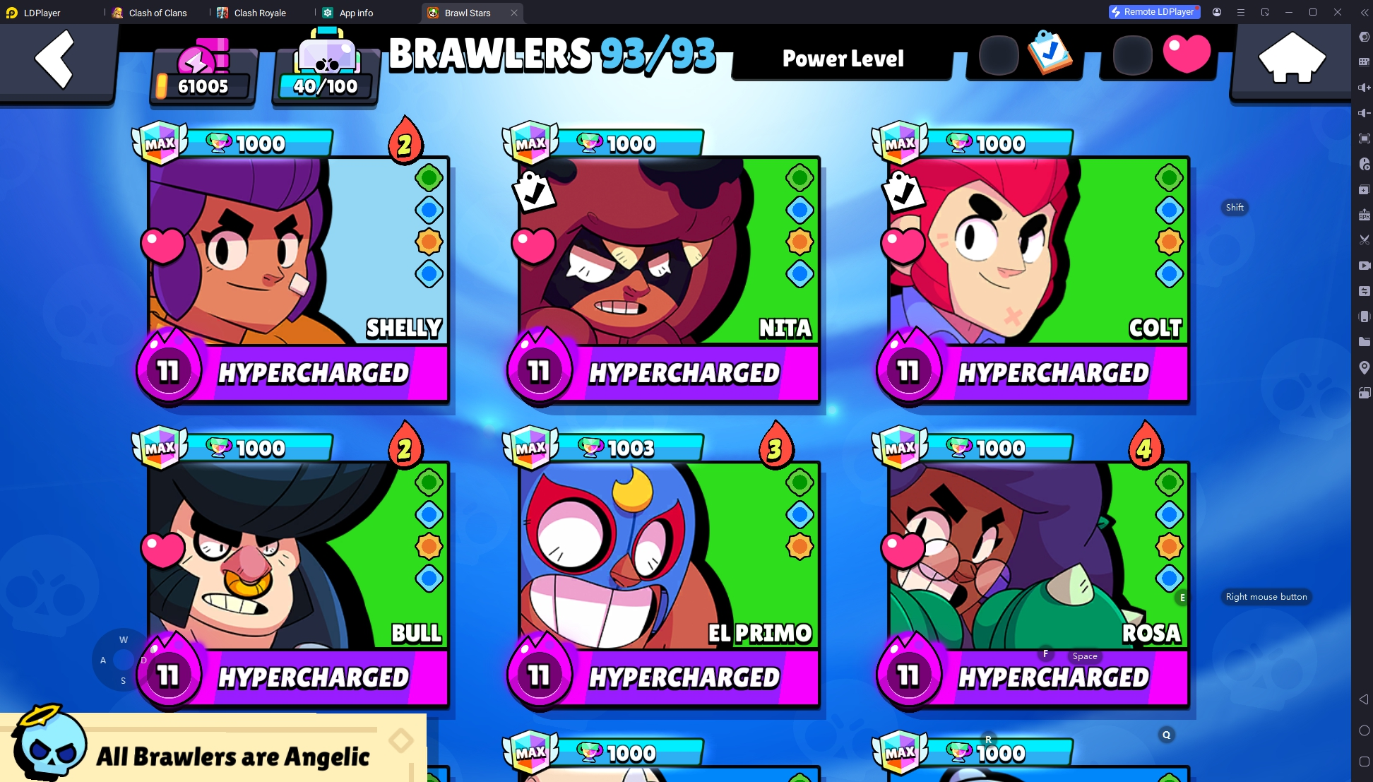 158 SKINS 💯 61.005 TROPHIES 🏆 93 BRAWLERS 🐼 27 HYPERCHARGED 🩸 30 MAX BRAWLERS 💛 MECHA MORTIS 🧡 BUZZETTE 🧡 CAESAR SAM 🧡 BYRON THE WHITE 🧡 CRASH TEST DARRYL 💯