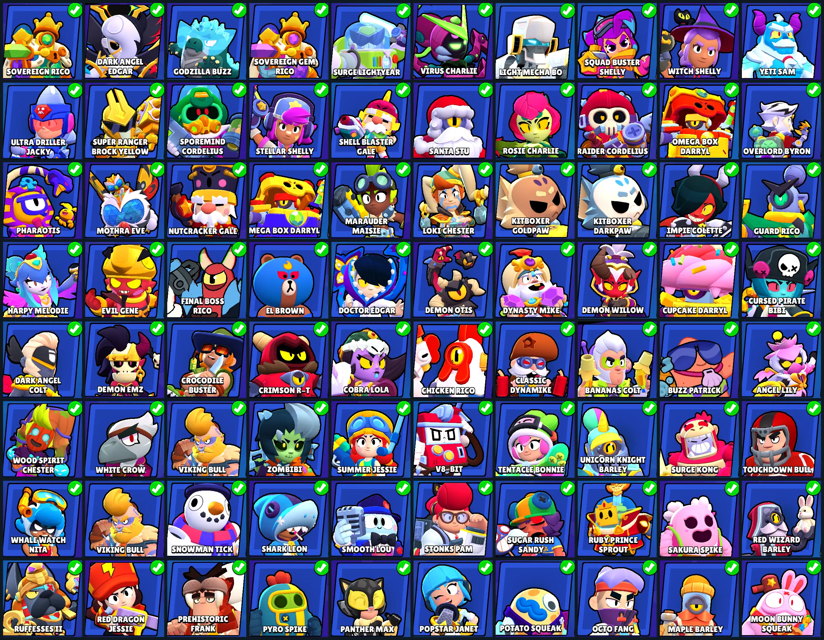 180 SKINS | 45820 TROPHIES | WITCH SHELLY | DARK ANGEL EDGAR | GODZILLA BUZZ | VIRUS CHARLIE | SURGE LIGHTYEAR | BANANAS COLT | SUPER RANGER BROCK YELLOW | WARRIOR BO | SANTA STU | CURSED PIRATE BIBI | NUTCRACKER GALE | HIGH FLYER LOLA | 87 BRAWLERS
