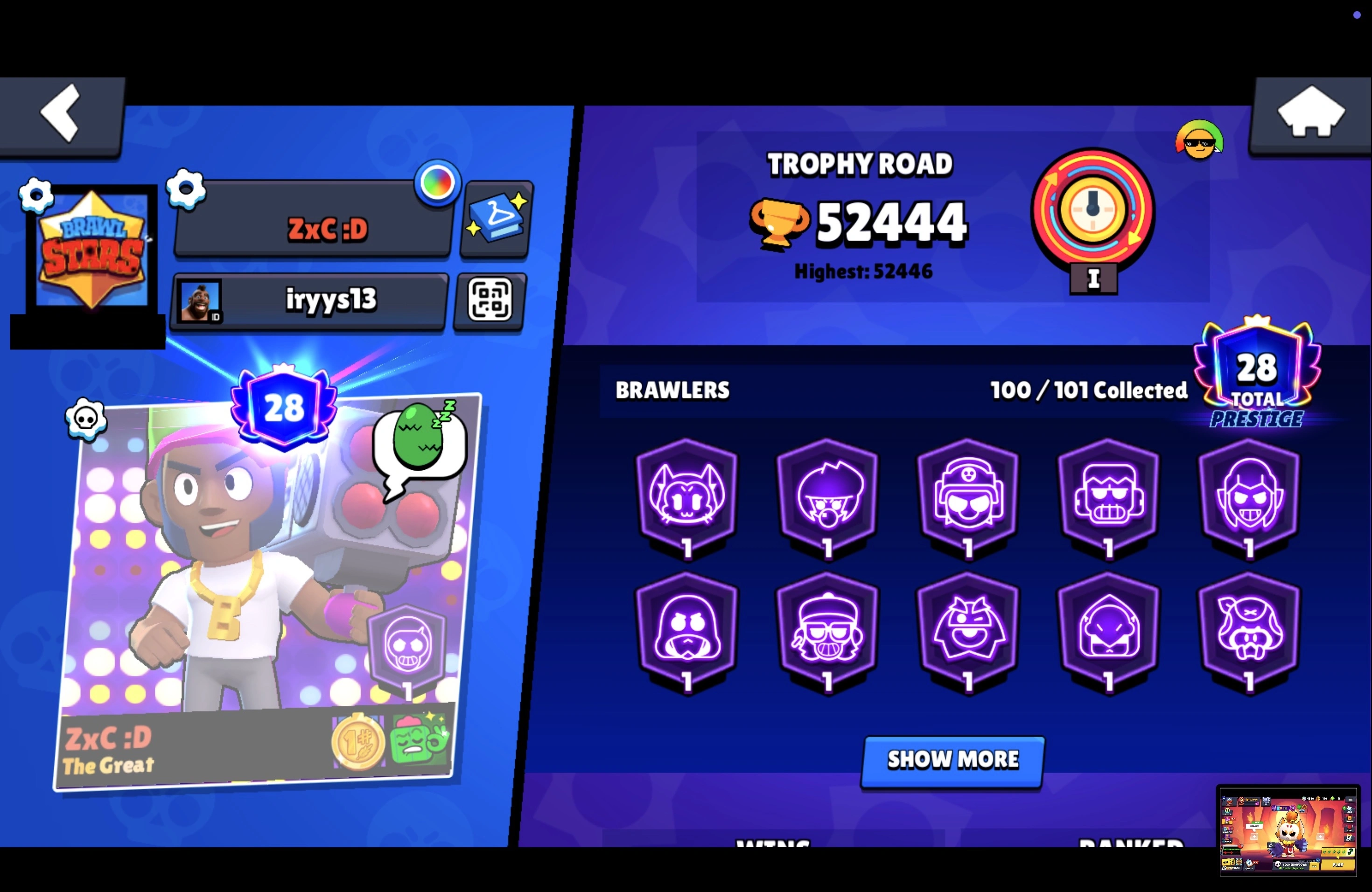 183 SKINS ⭐ 52.400 TROPHY ⭐ 100 BRAWLERS ⭐ 12 HYPERCHARGED ⭐ 20 MAXED BRAWLERS ⭐ 28 PRESTIGE ⭐ 15 BUFFIES ⭐ KITBOXER ⭐ IMPIE COLETTE ⭐ GUARD RICO ⭐ FROST QUEEN AMBER ⭐ MECHA EDGAR ⭐ LEGENDARY ⭐ 50K
