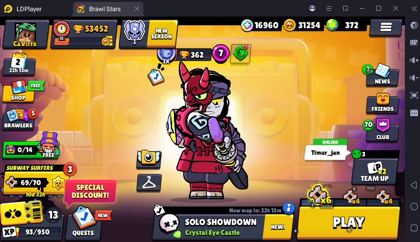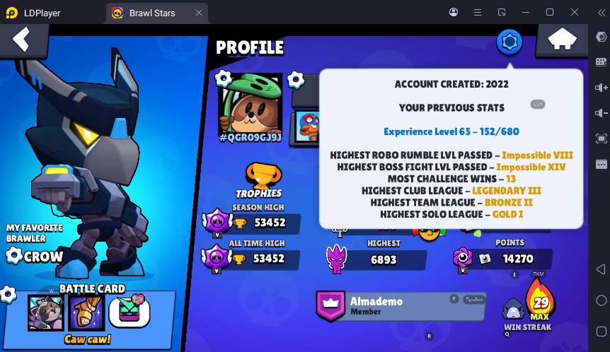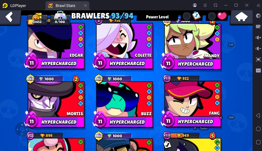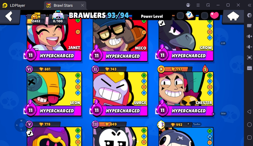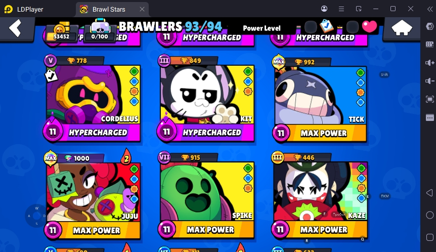 222 SKINS 💯 53.452 TROPHIES 🏆 93 BRAWLERS 🐼 20 HYPERCHARGED 🩸 24 MAX BRAWLERS 💛 CURSED KENJI 🧡 ANTIVIRUS 8-BIT 🧡 HELLBULL 🧡 CROWBONE 🧡 FENRIR BUZZ 💯