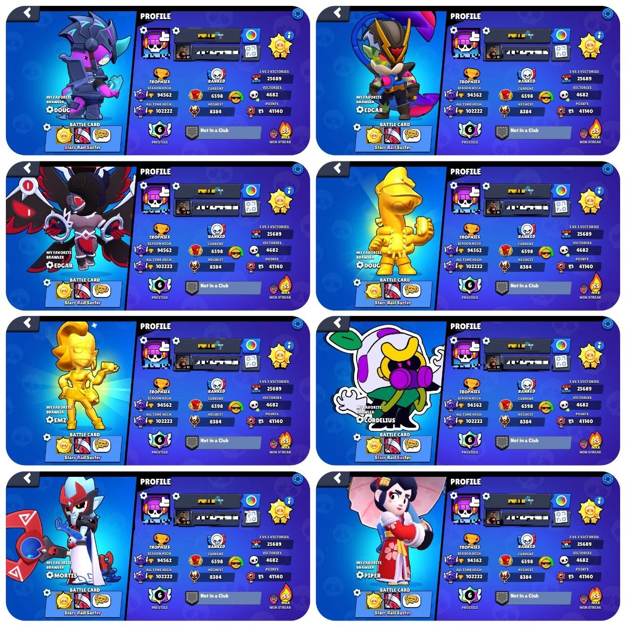 6 PRESTIGE ✨ SOLAR FAME 2✨ THUMBS DOWN PIN✨81 MAX 60 HYPERCHARGES ✨ 100K TROPHIES✨STACKED 340 SKINS✨ SANTA STU ✨ GOLD EMZ✨ GOLD DOUG✨ FULL ACCESS✨ INSTAN DELIVERY