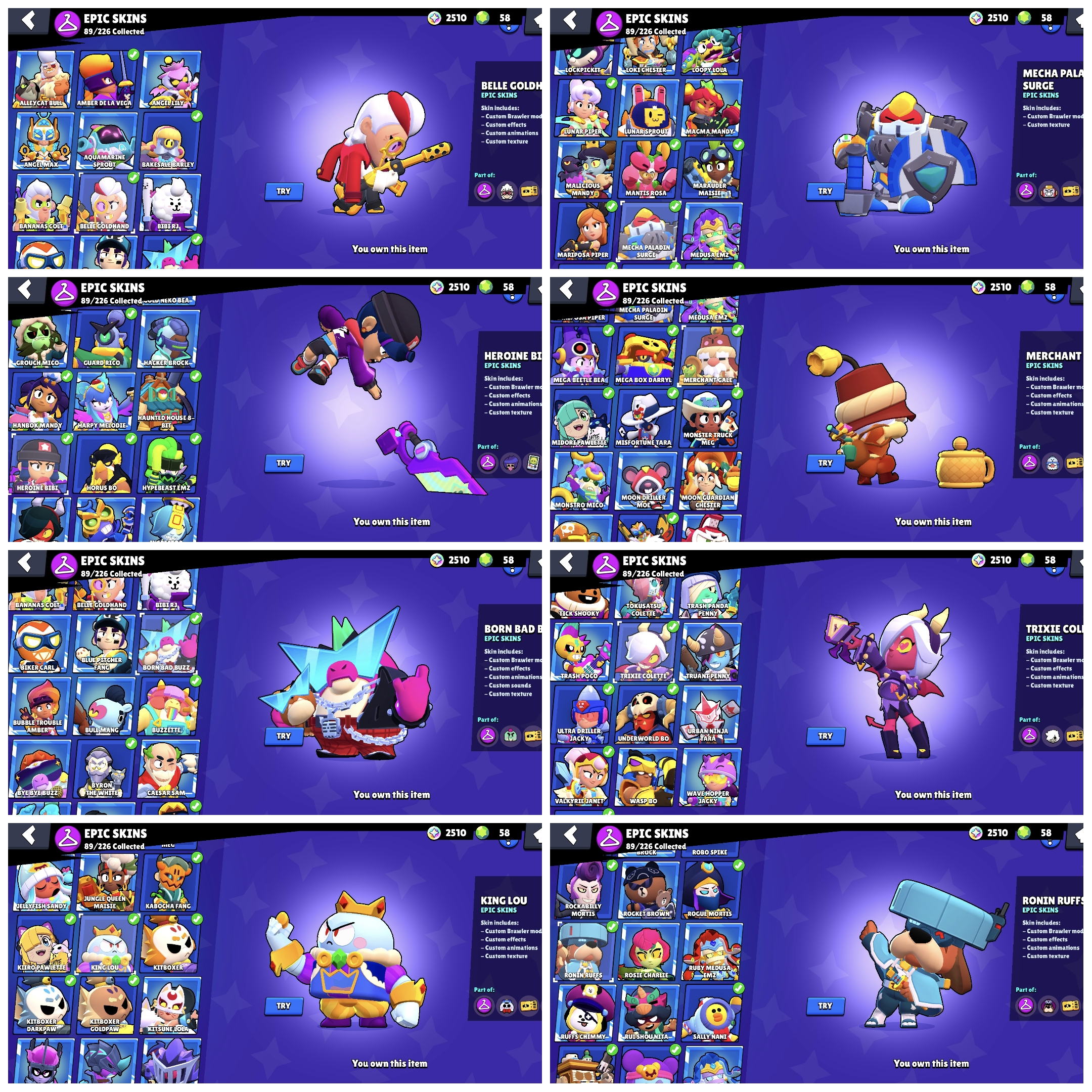 ⭐ 69k Trophy ⭐ 1x New Masters ⭐ 1x Prestige ⭐ 7x Og Passes ⭐ Heroine Bibi ⭐ Merchant Gale ⭐ Mecha Paladin Surge ⭐ Trixie Collete ⭐ 250 Skins ⭐ 250 Gems ⭐
