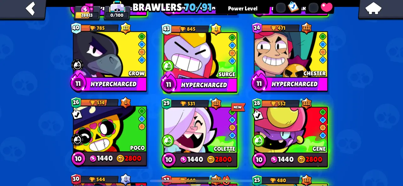 🔥 9 Max Brawlers 🔥 139 Skins 🍭 28.813 Cups 🏆 9 Hypercharged 🍭 38 Epic Skins 🍭 70/91 Brawlers 🐼 FULL ACCESS & GUARANTEE [F1359]