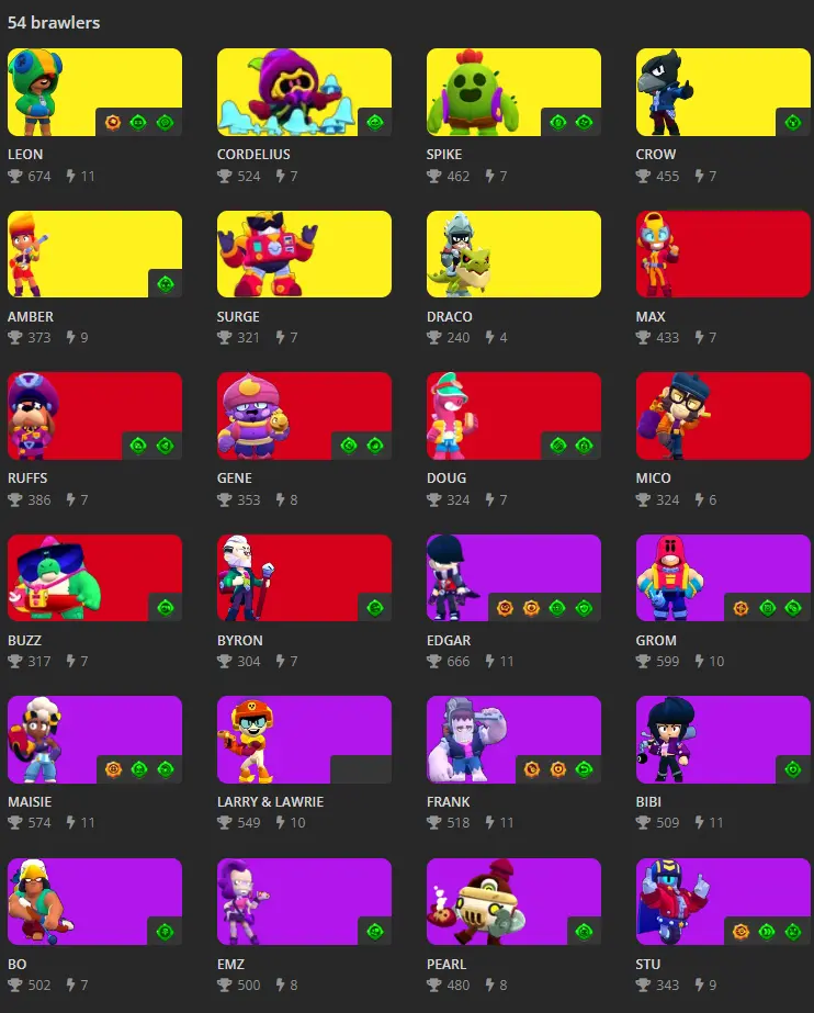 Brawl Stars : 54 Brawlers : 7 Legends : LEON ; CORDELIUS ; SPIKE ; CROW ; AMBER ; SURGE ; DRACO