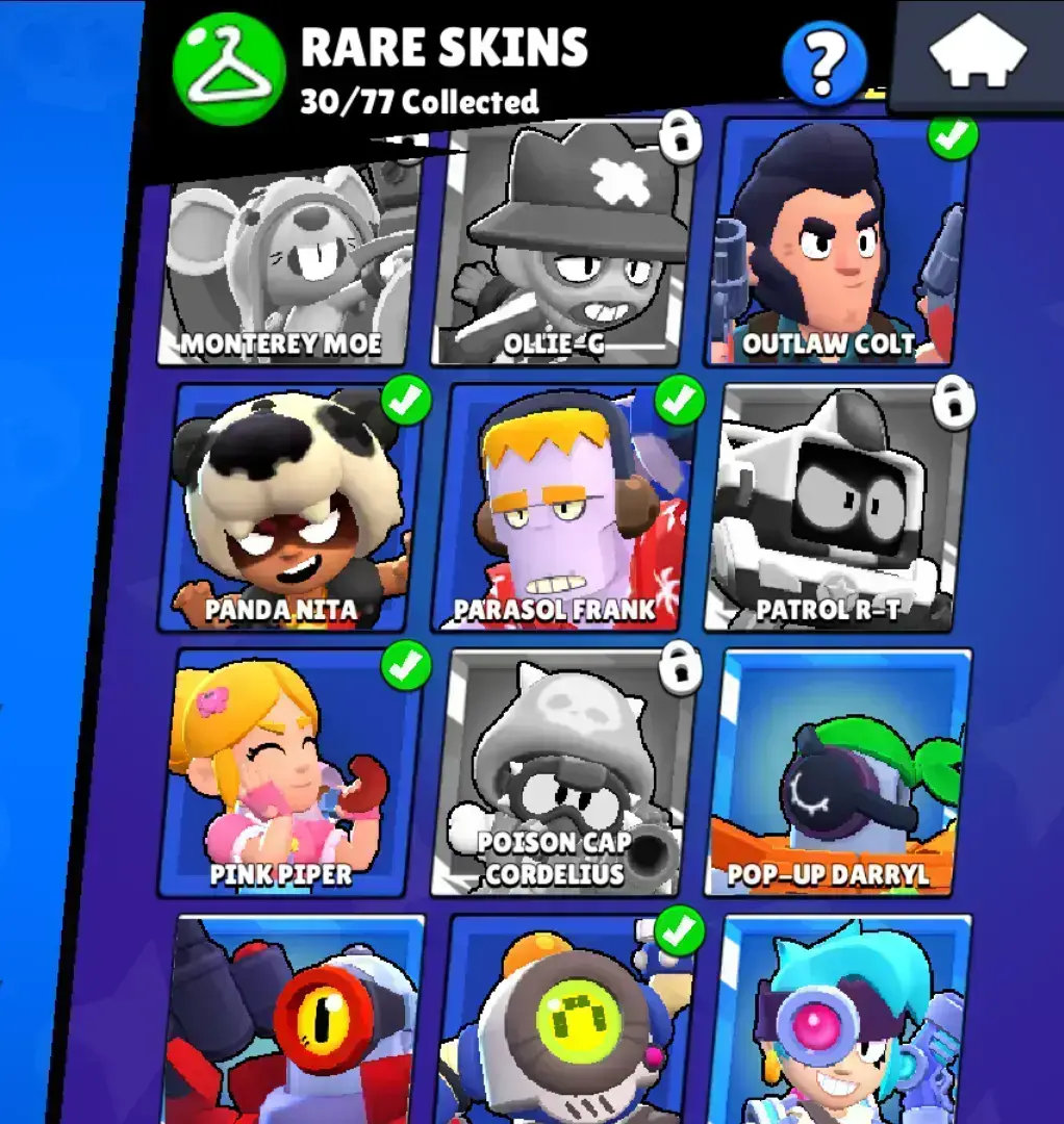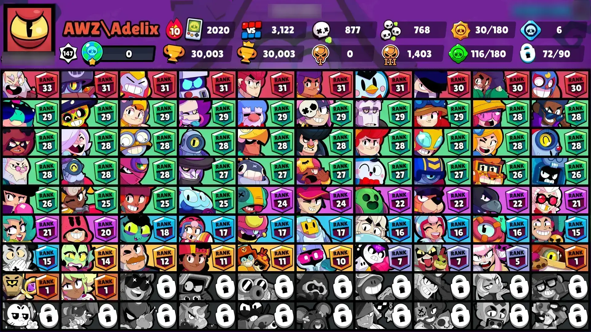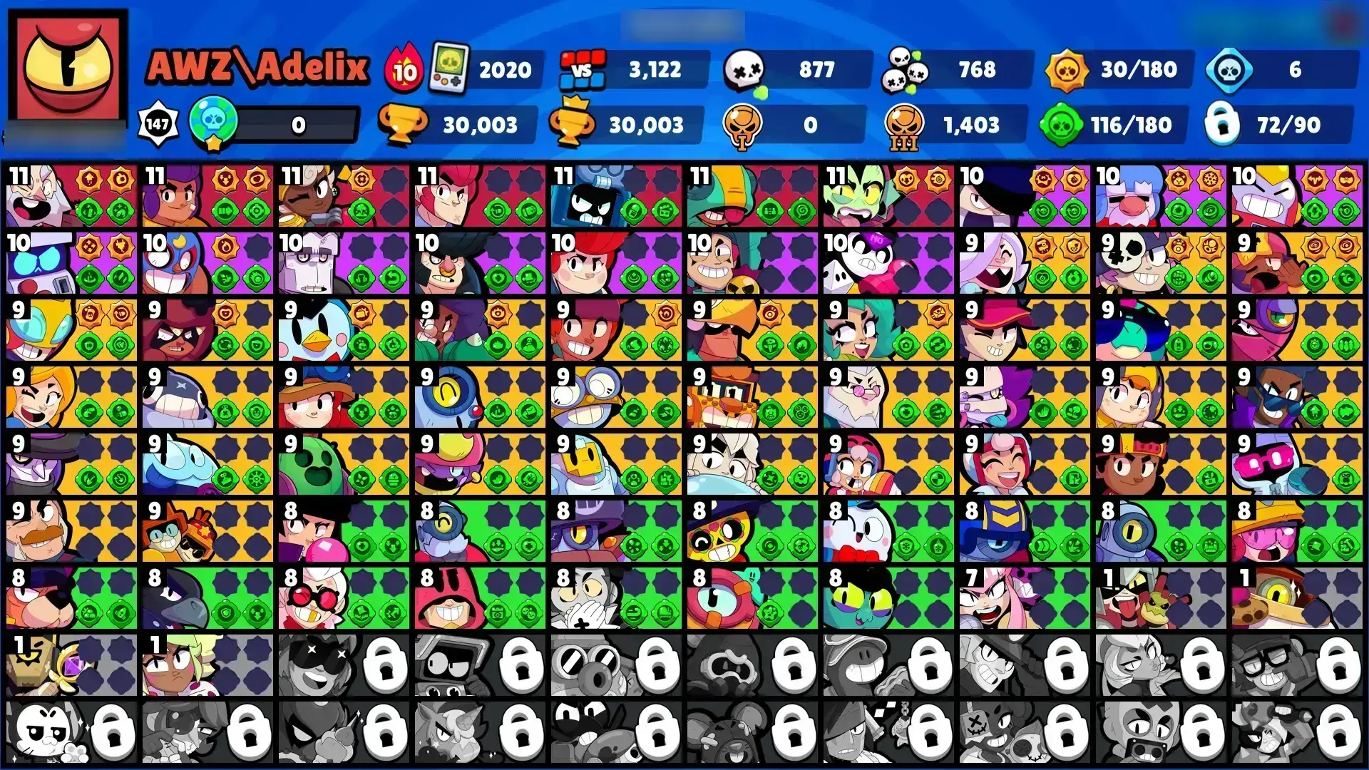 GEMS SPENT 4520 | 7 MAX LVL BRAWLERS | 60 SKINS | ANTIVIRUS 8-BIT | BUZZETTE | FURIOUS FANG | IMPIE COLETTE | HOLIDAY PARTY FRANK | MAJOR ROSA | SALLY NANI | SLEIGHER GRIFF | UNDERWORLD BO | SURGE LIGHTYEAR | DRACO | CHESTER | MEG