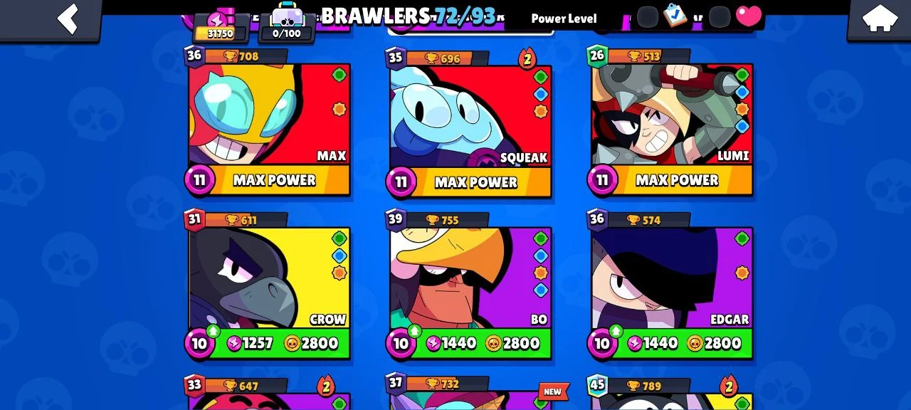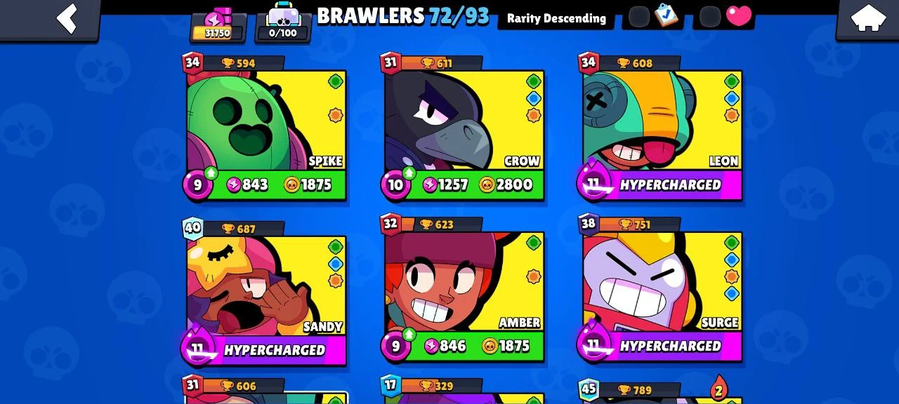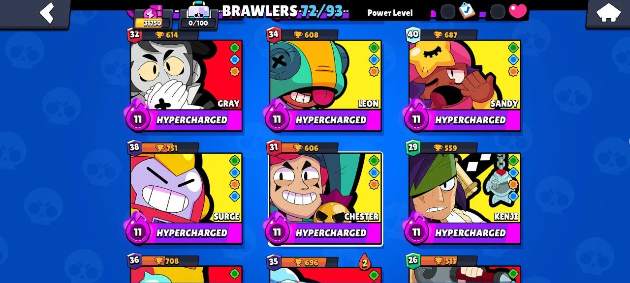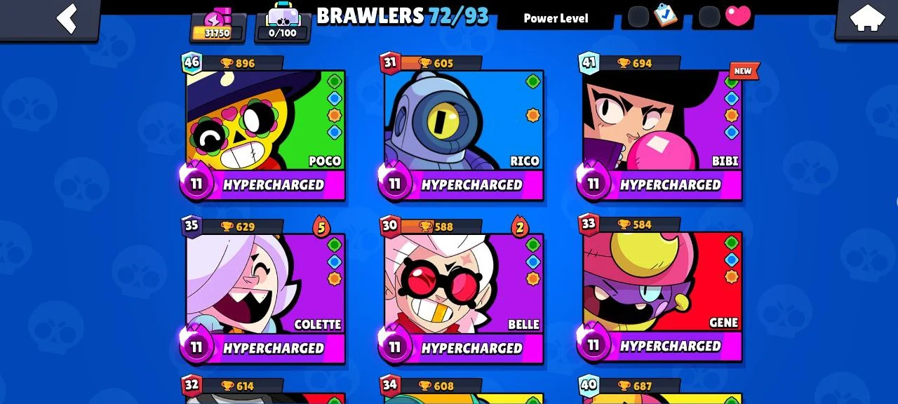 STAR SHELLY ✨ 31750 TROPHY ❤️ 72 BRAWLERS 💥 4 LEGENDARY ❤️🔥 12 HYPERCHARGED 💫 39 GEMS 🎊 93 OG SKINS 💯 INSTANT DELIVERY 🔥