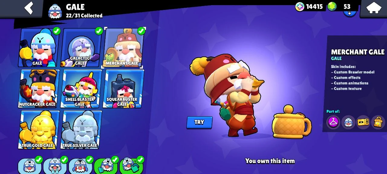 💥 STAR SHELLY 🌟 MERCHANT GALE 💼 25,033 TROPHIES ⚡ 3 HYPERCHARGED 💫 7 MAX 💥 73/95 BRAWLERS ✨ 7 LEGENDARY 🎯 95 OG SKINS 💥 SURGE LIGHTYEAR 💥 LIGHT MECHA BO 💥 RUDE LOU 💥