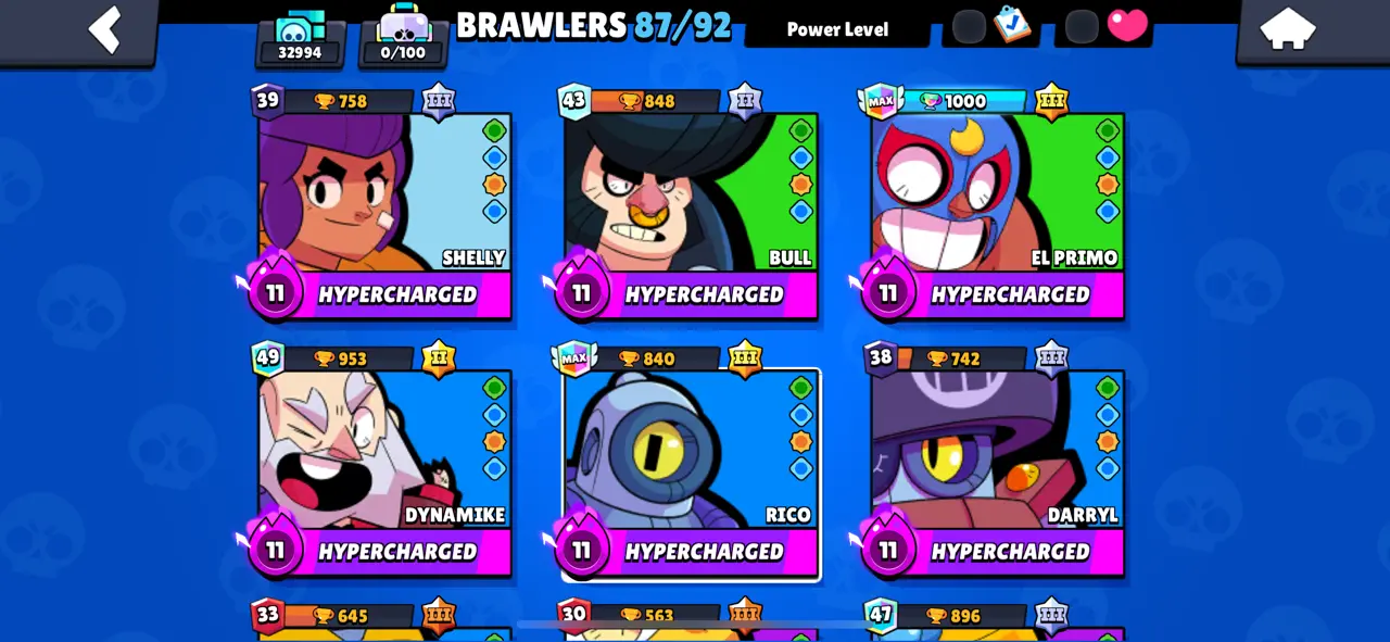 🔥 [-SUPER AWESOME-] 🔥29 Max Brawlers🔥192 Skins 🍭 32944 Cups 🏆 24 Hypercharged 🍭 5 Max Powers 🍭 61 Epic Skins🍭 8 Nice Titles 🍭 87/92 Brawlers 🐼 FULL ACCESS & GUARANTEE [F1502]