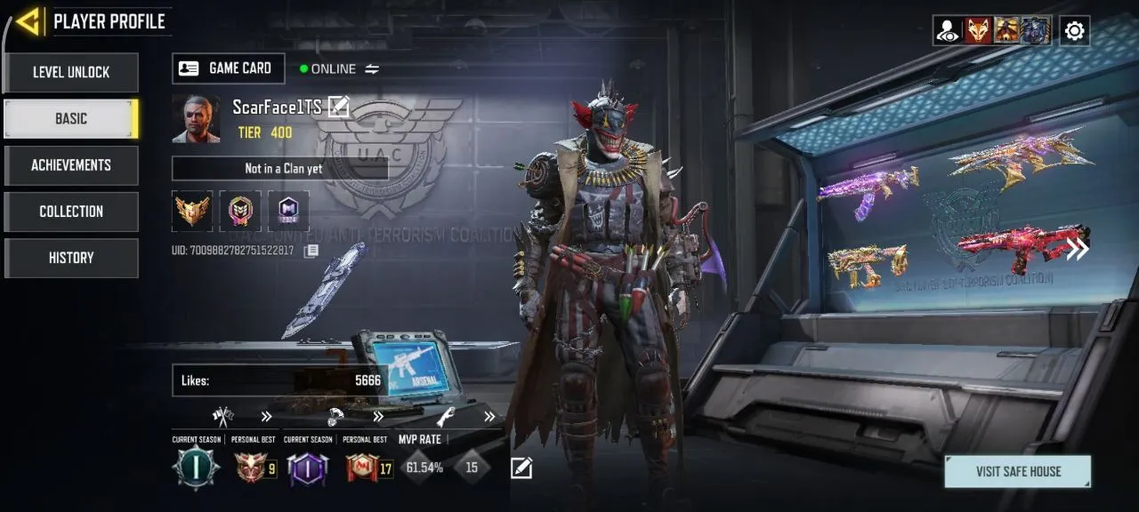 iOS Android 🏹 Level 400 🛍️ Rank Master 🌟 3 Mytich 💯 28 Legendery 🔥 592 Epic 👑 Kilo 141💫 Ak117 Lava 🥶 AK 47 🧨 Code1047