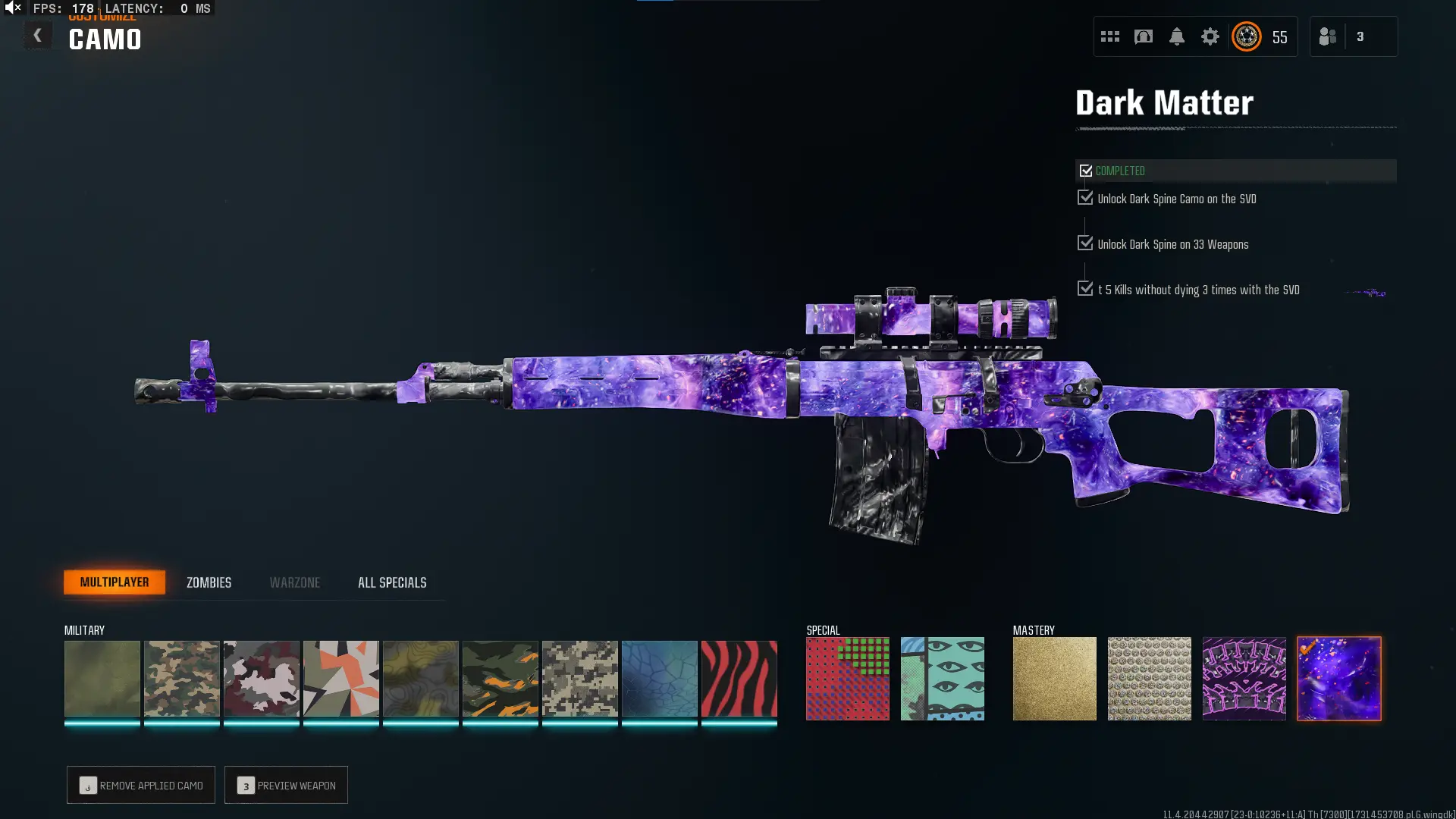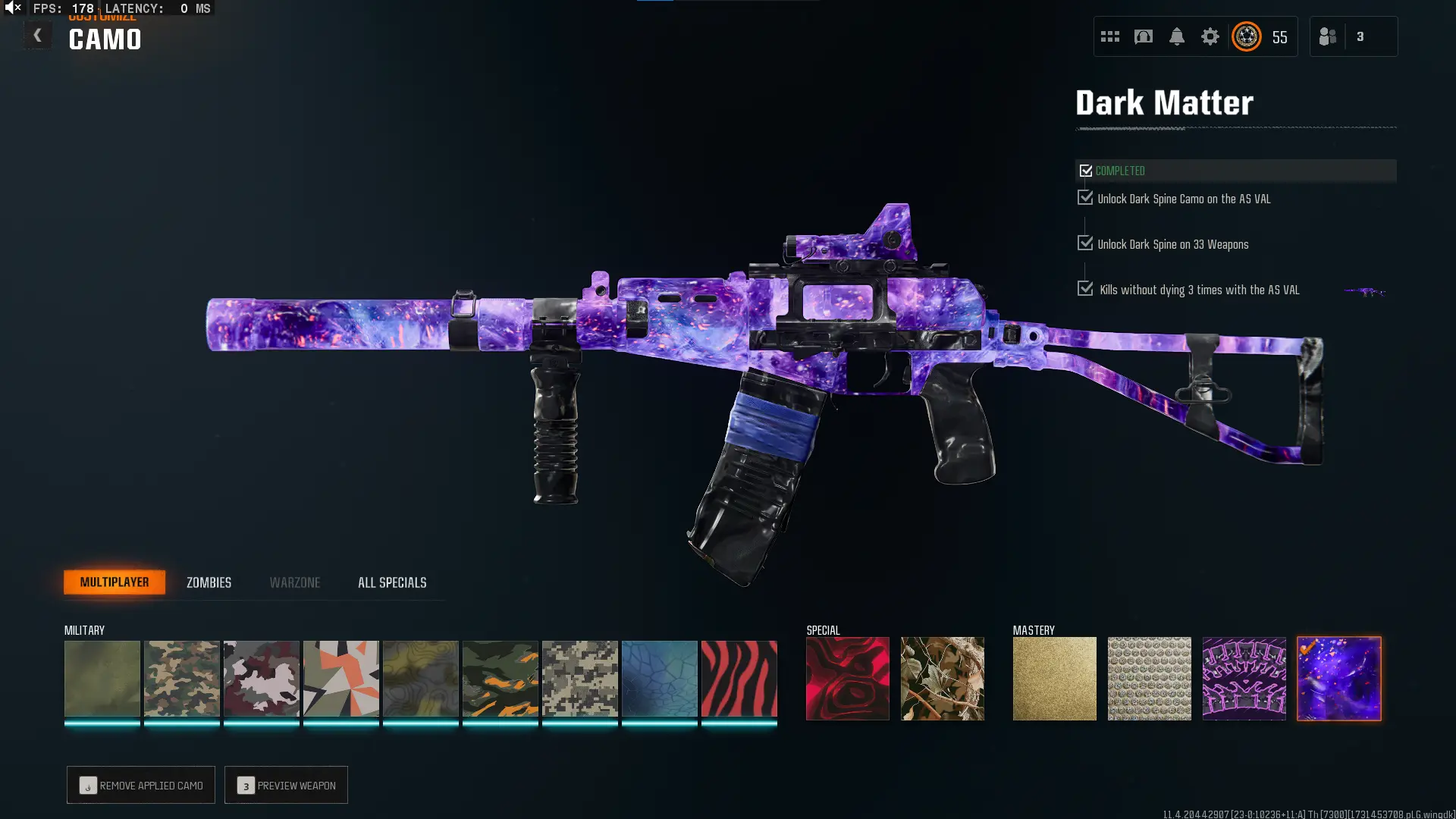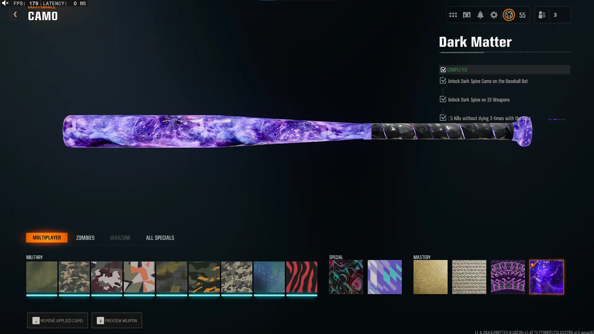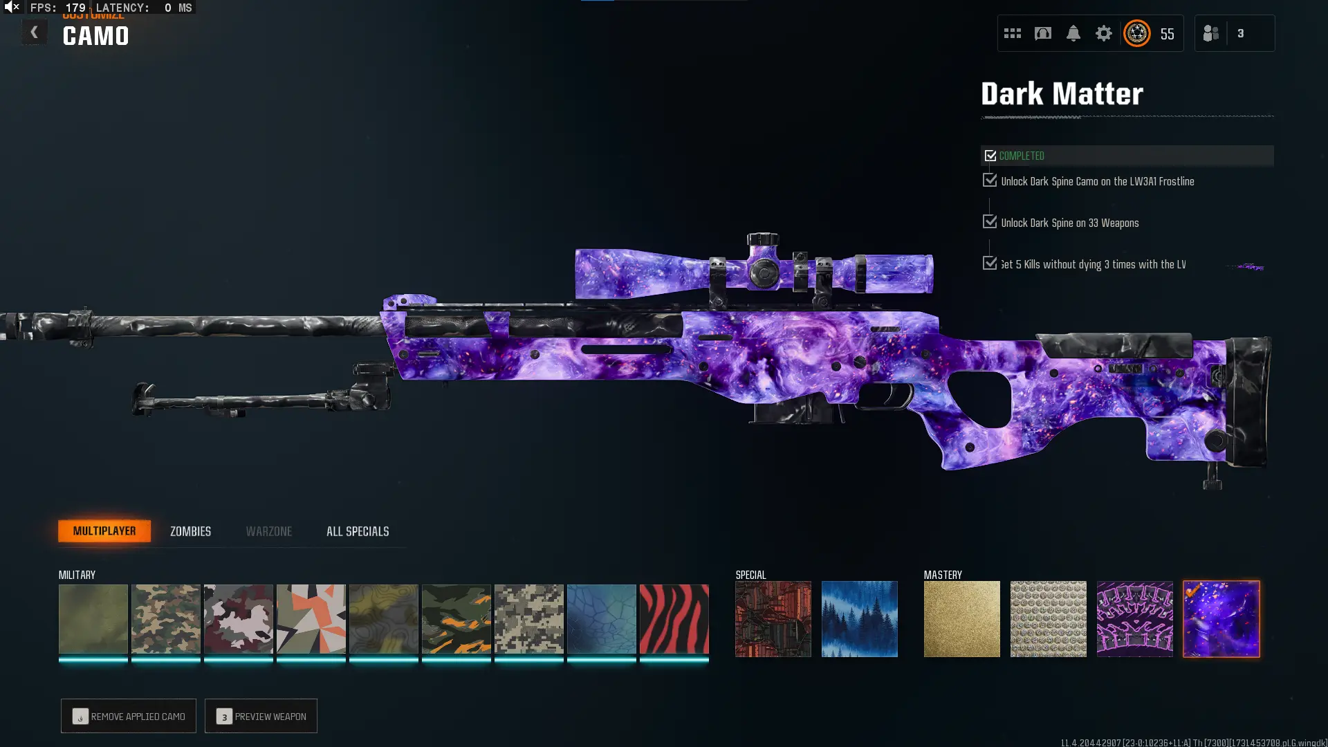 🕸️ BO6 & WZ4 🕸️prestige 4 33 Dark Matter 💎 495 C amos⚔️all Multiplayer Camos Are Unlocked on 33 Weapon💎 Level 55 🔥 17 Operators 🕸️ Dark Spine 💎 Diamond✨ Gold Camos 🦾 Prestige-Ready🦾 Dark Spine Linkable to: Steam, Battle.net, PSN, Xbox 🌐 Black Ops 6