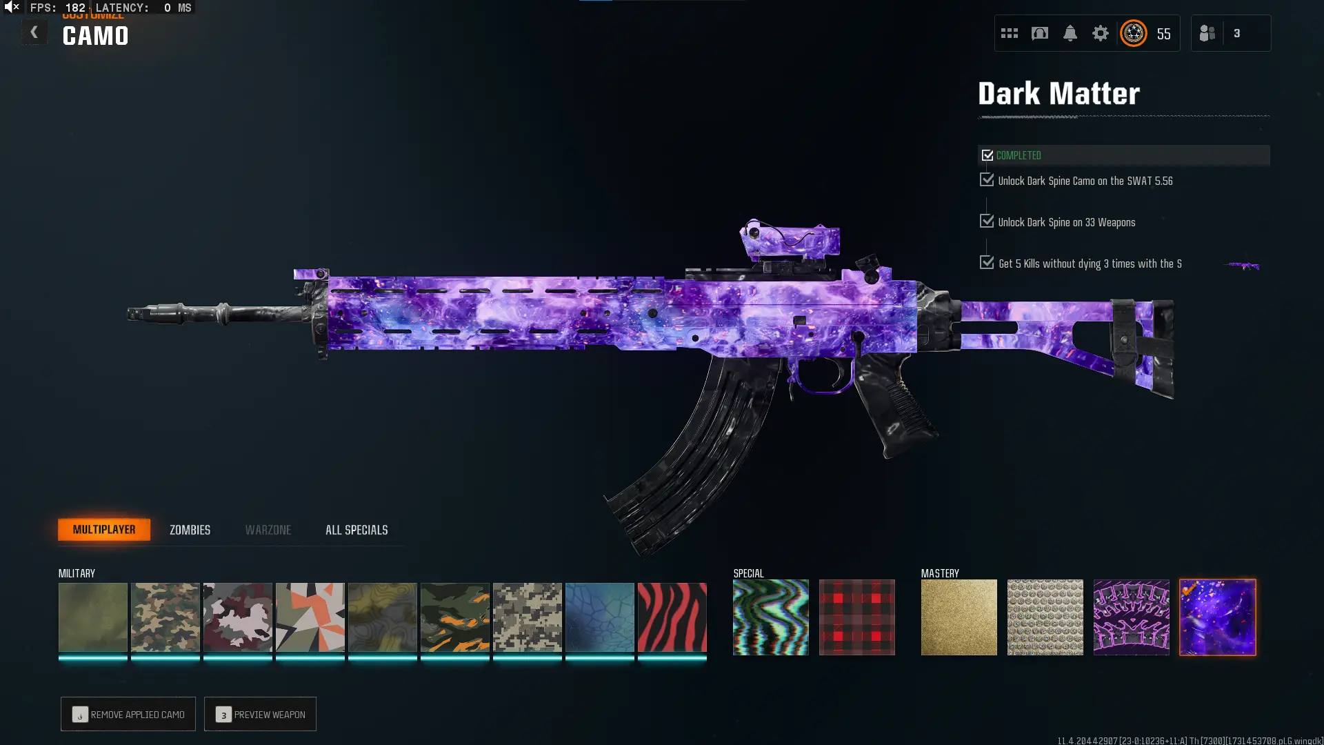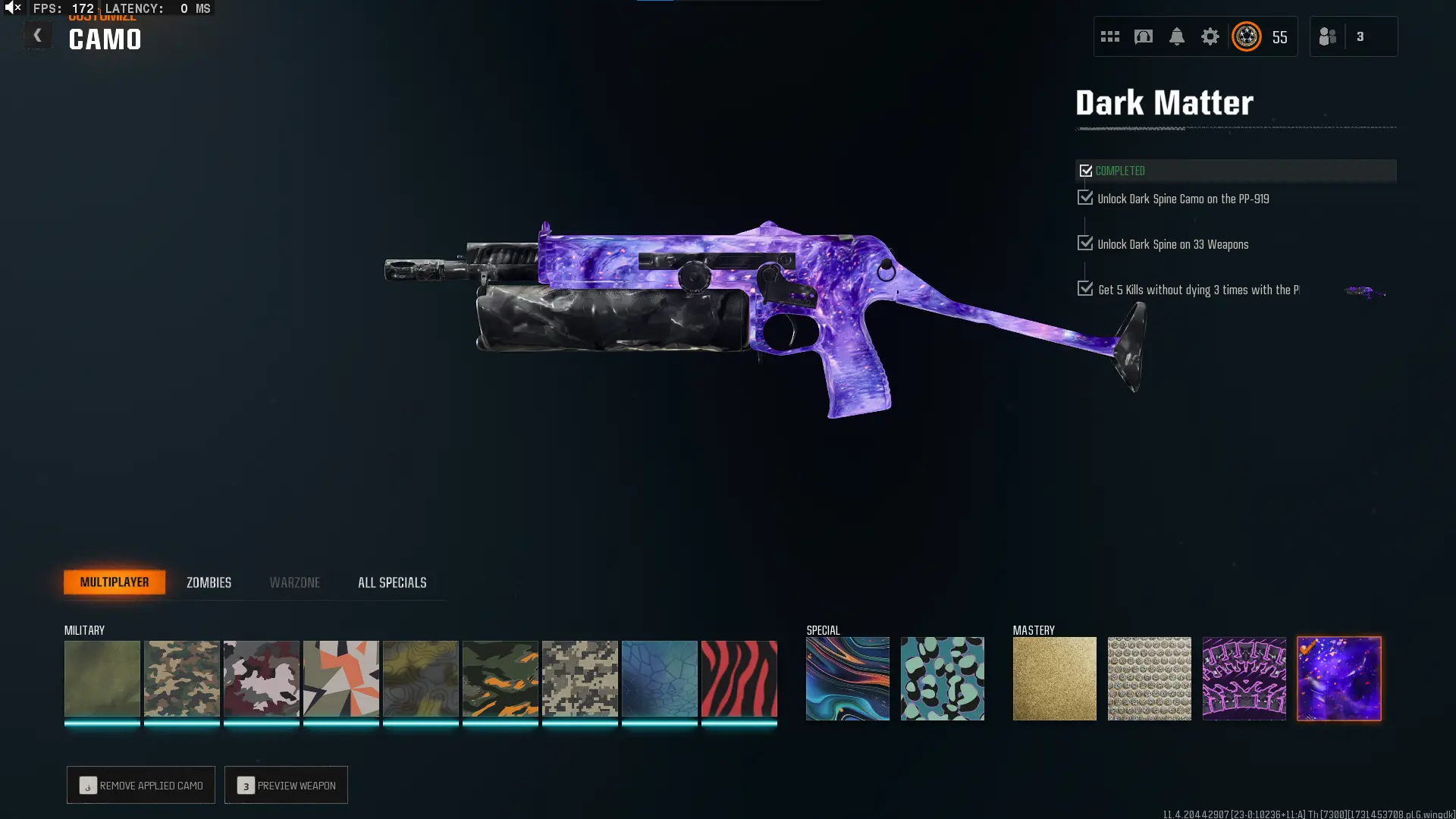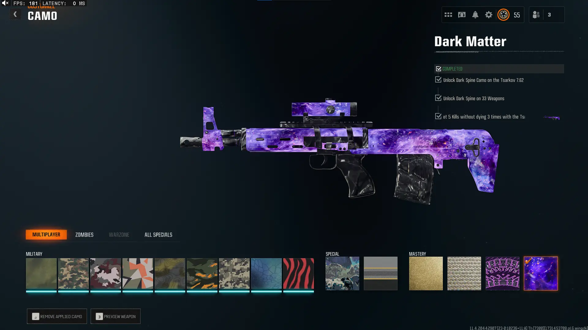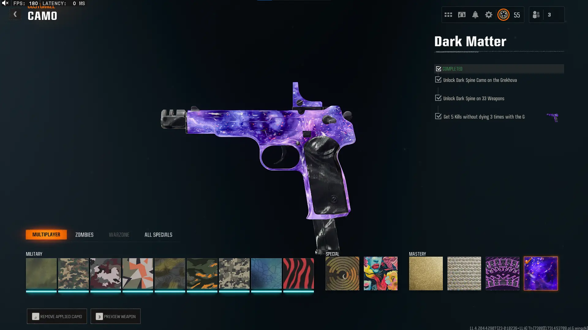 🕸️ BO6 & WZ4 🕸️prestige 4 33 Dark Matter 💎 495 C amos⚔️all Multiplayer Camos Are Unlocked on 33 Weapon💎 Level 55 🔥 17 Operators 🕸️ Dark Spine 💎 Diamond✨ Gold Camos 🦾 Prestige-Ready🦾 Dark Spine Linkable to: Steam, Battle.net, PSN, Xbox 🌐 Black Ops 6