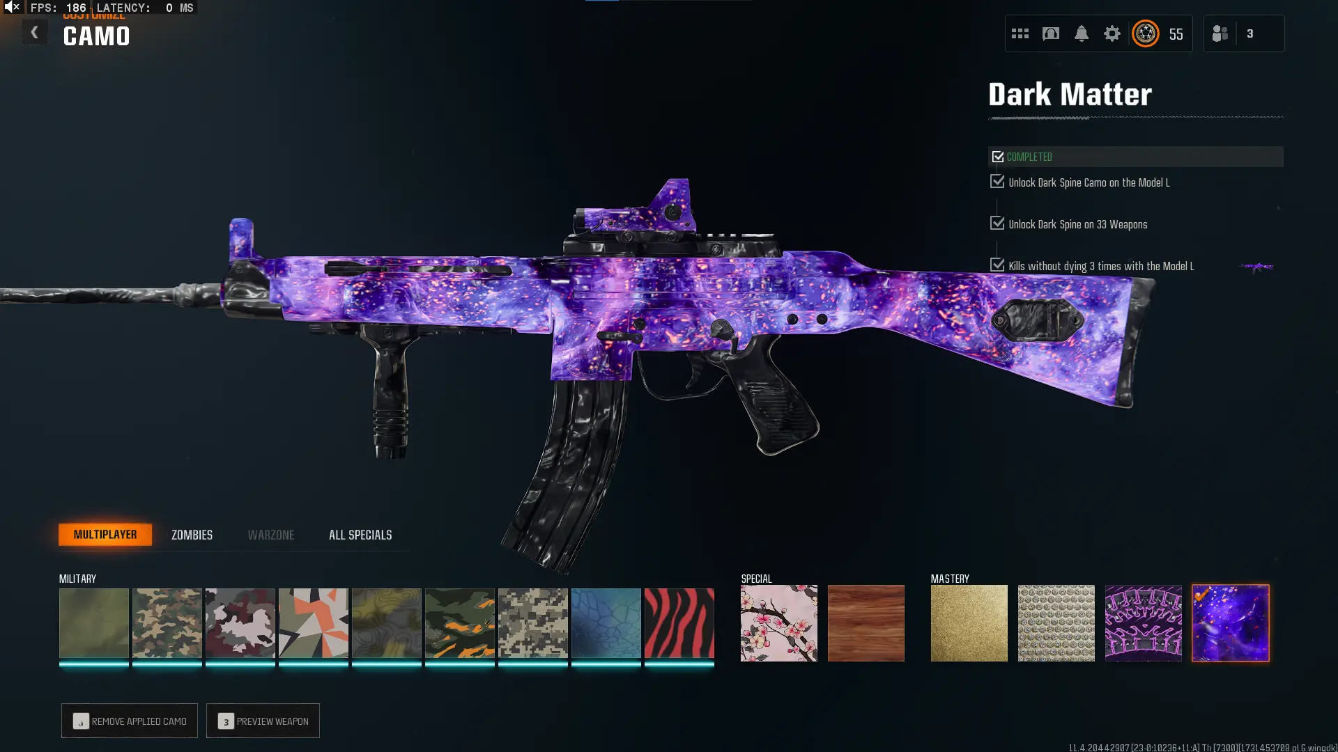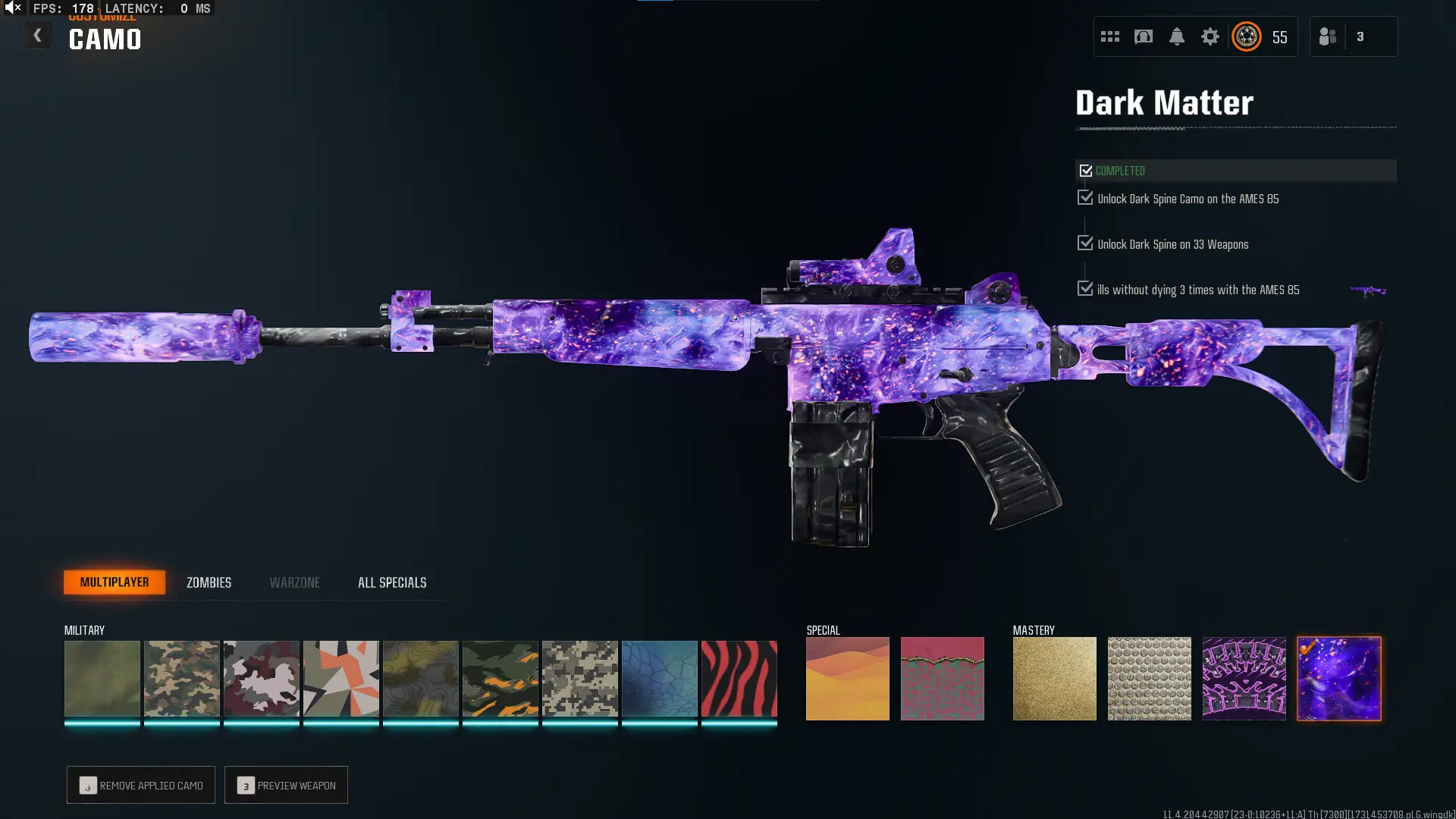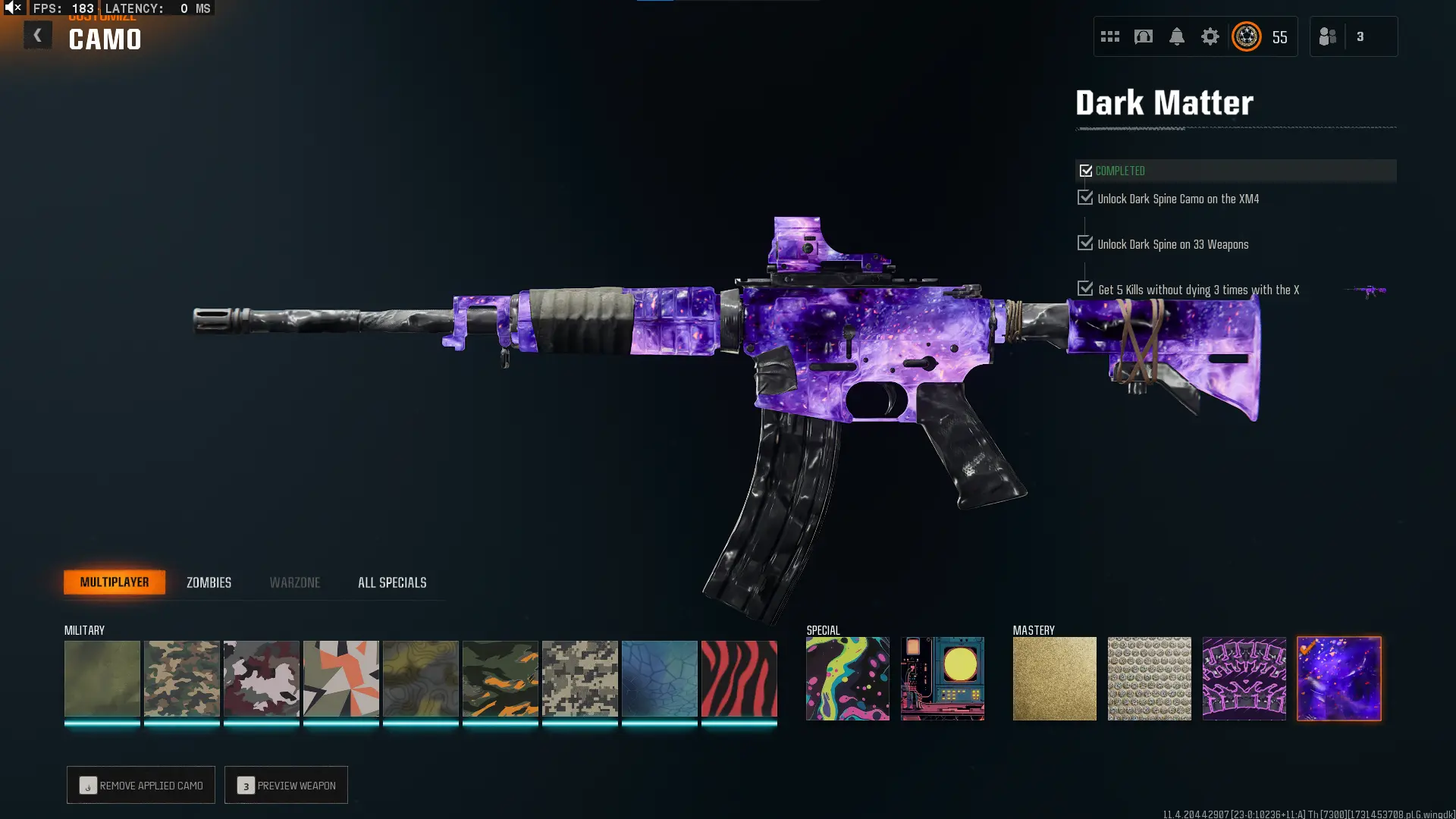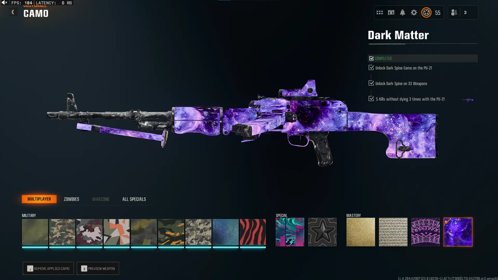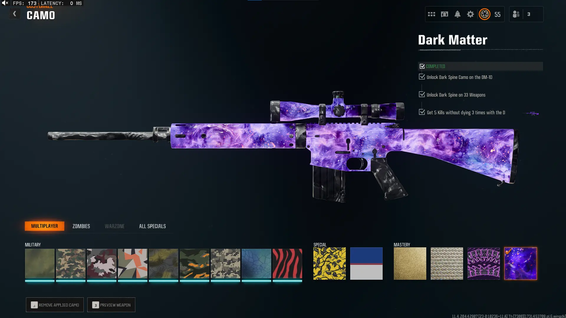 🕸️ BO6 & WZ4 🕸️prestige 4 33 Dark Matter 💎 495 C amos⚔️all Multiplayer Camos Are Unlocked on 33 Weapon💎 Level 55 🔥 17 Operators 🕸️ Dark Spine 💎 Diamond✨ Gold Camos 🦾 Prestige-Ready🦾 Dark Spine Linkable to: Steam, Battle.net, PSN, Xbox 🌐 Black Ops 6