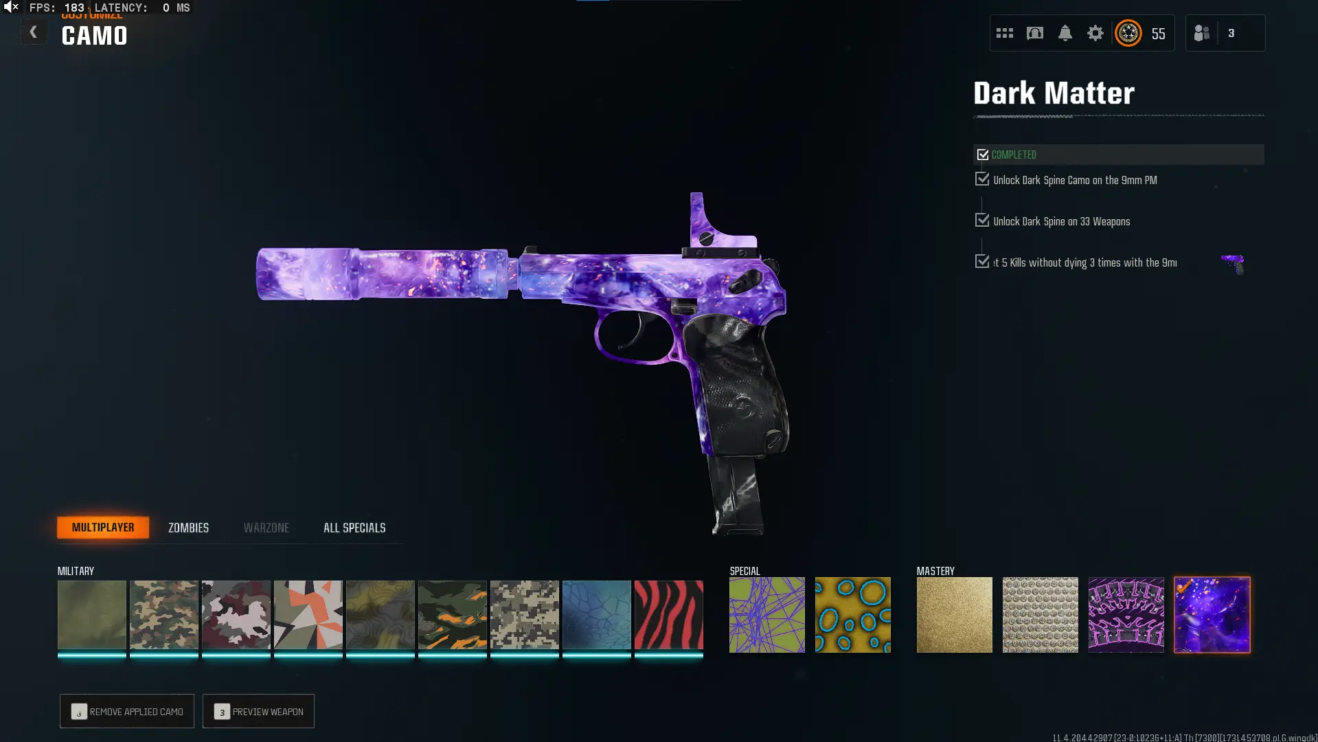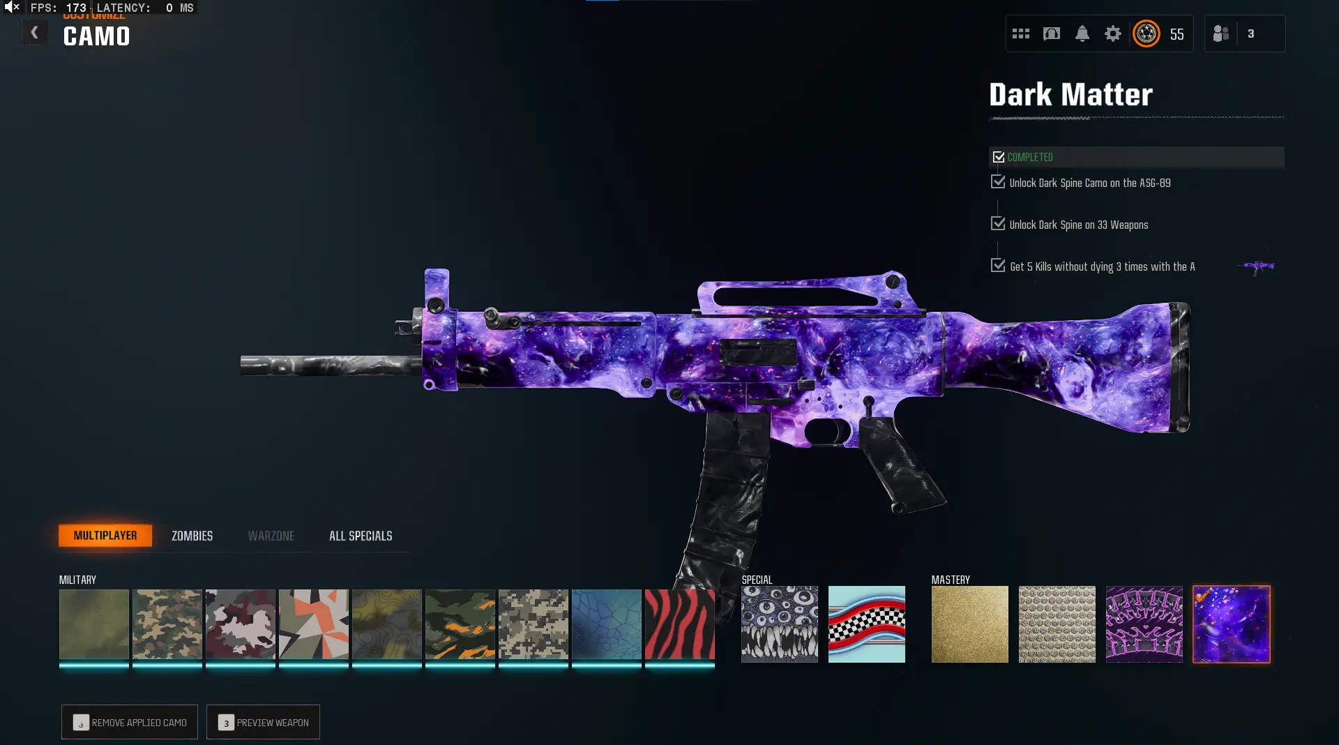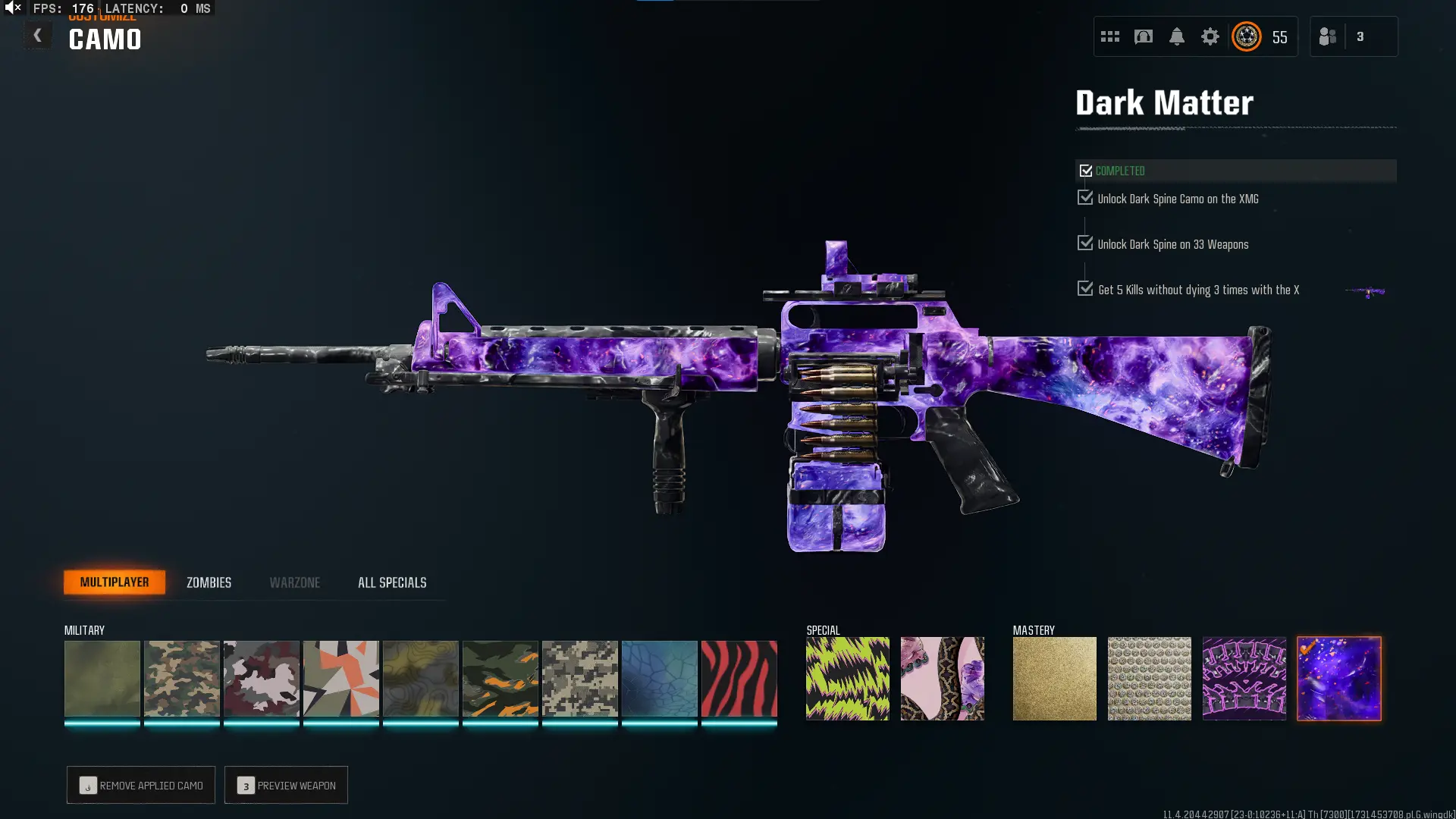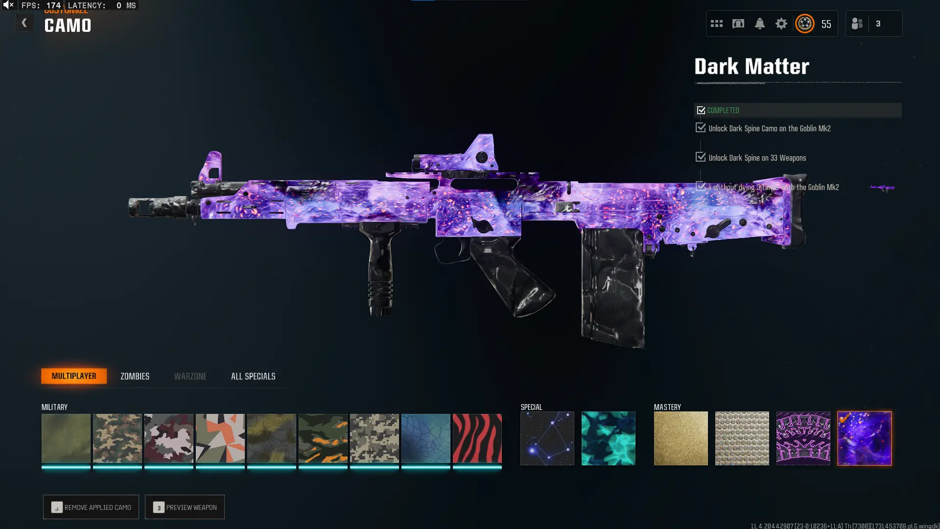 🕸️ BO6 & WZ4 🕸️prestige 4 33 Dark Matter 💎 495 C amos⚔️all Multiplayer Camos Are Unlocked on 33 Weapon💎 Level 55 🔥 17 Operators 🕸️ Dark Spine 💎 Diamond✨ Gold Camos 🦾 Prestige-Ready🦾 Dark Spine Linkable to: Steam, Battle.net, PSN, Xbox 🌐 Black Ops 6