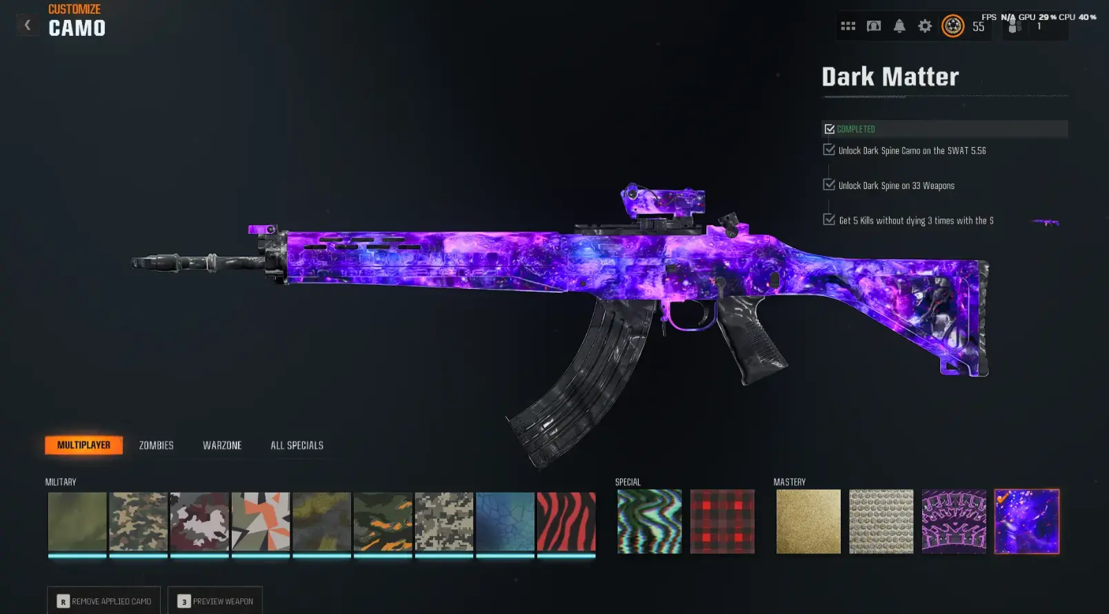 🔥 BO6 / WZ4 Dark Matter Maxed Account | 🎨 495 Rare Camos | 🏅 Prestige 5 + Level 55 | 🎭 16 Operators Unlocked (Incl. PARK) | 🕹️ Works on PC / Xbox / PlayStation | 🚀 Fast Delivery