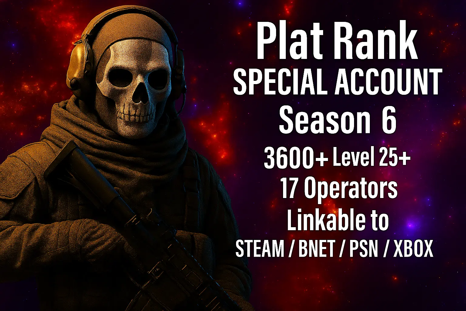 Plat Rank 🎯【 WZ4 | Rebirth Map | SPECIAL ACCOUNT 】| Season 6 | 🥈 Plat Ranked – 3600+ SR 🎮 Level 25+ | 🧑✈️ 17 Operators | 🔐 Full Access | 🌐 Linkable to STEAM / BNET / PSN / XBOX | #MO5385