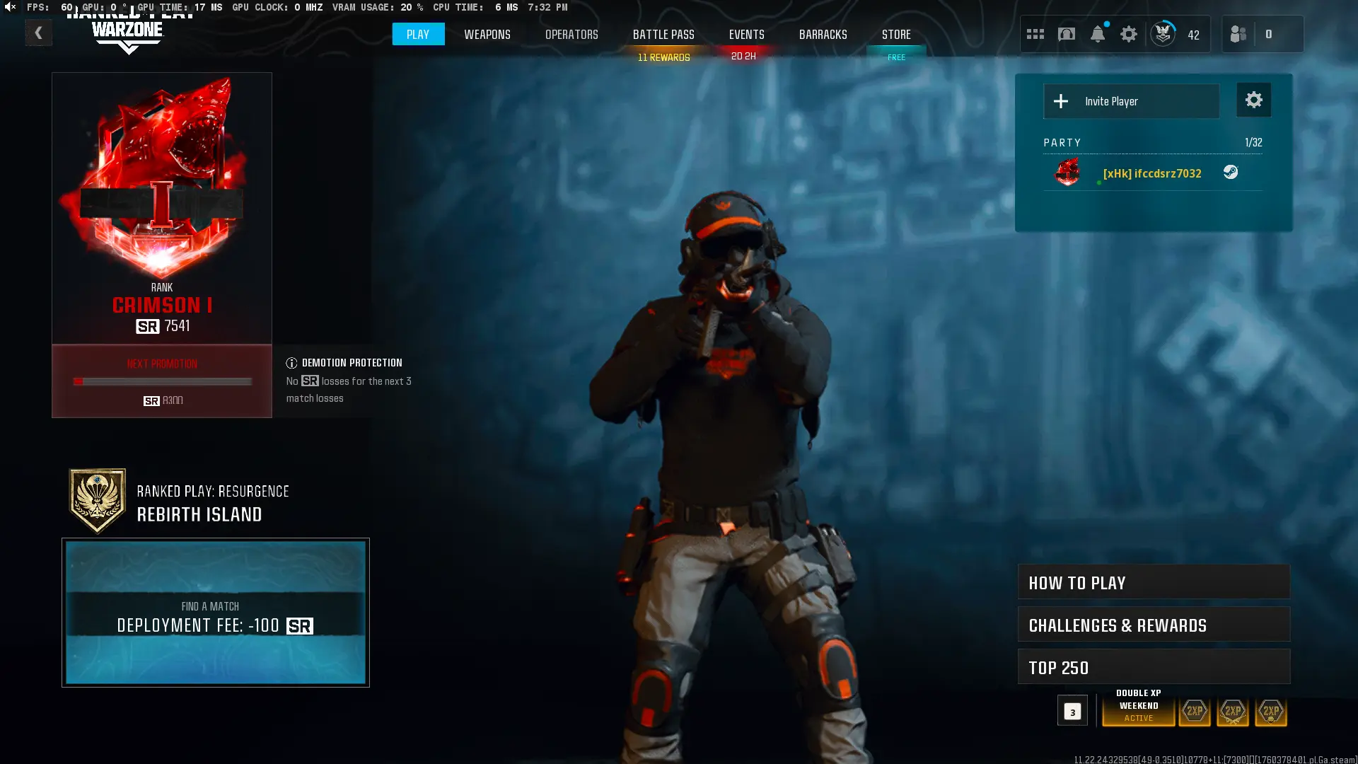 💠 WZ4 Rebirth 💠 Crimson Rank SR 7541 SZN 6 🔥 Crimson Ranked Ops 🎯 Full Access 🚨 Season 6 Resurgence Mode 🌐 Linkable: Steam, Battle.net, PSN, Xbox 🕹️ Warzone 4 Crimson