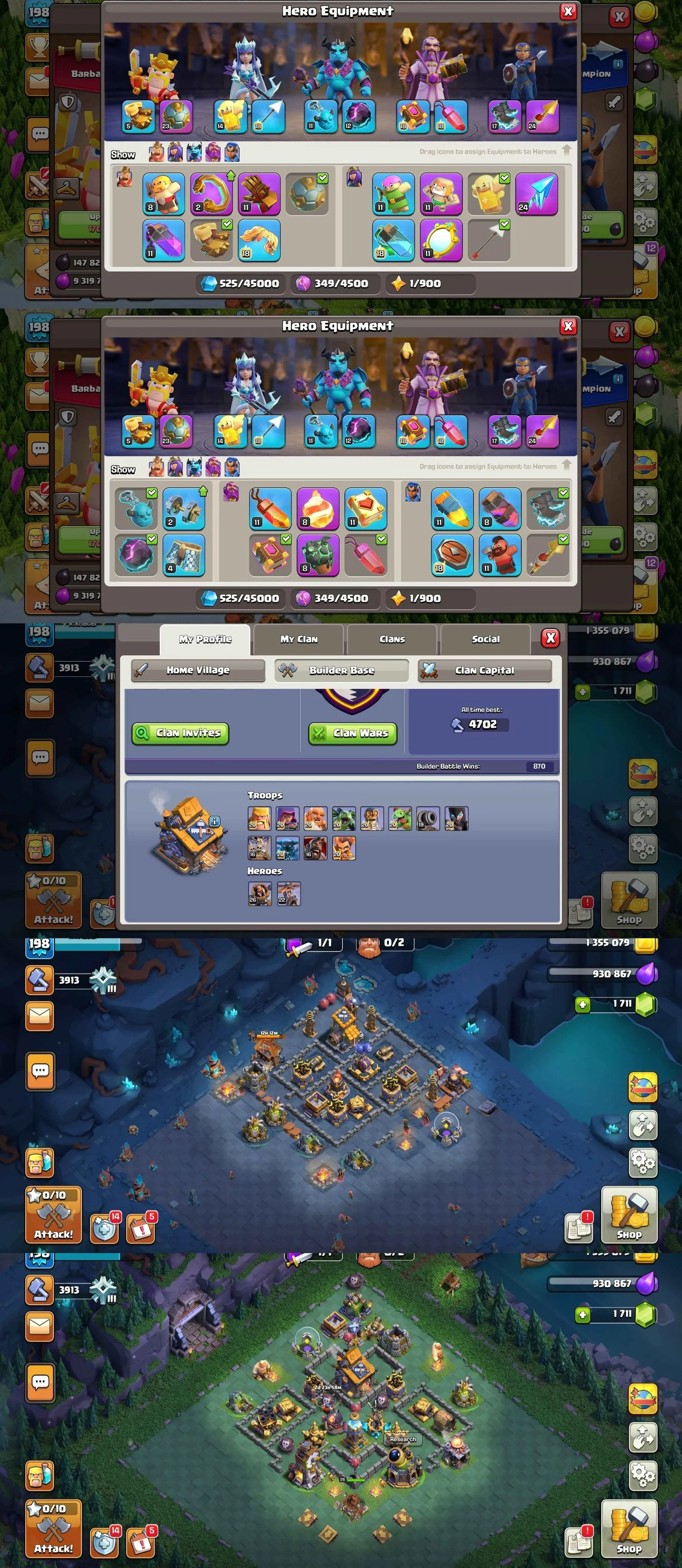1603 | TH16 MAX ID | GEMS-1711 | HERO'S:72-81-52-56-25 | 10x EPIC EQUIPMENT | GOLDEN WALL | XP 198 | 4 SKIN | NC FREE